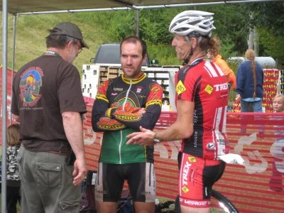 Photo taken from Jeff Hall’s website of Jeff, Gary Crandall, MTB Hall of Fame Promoter, and me after the race.