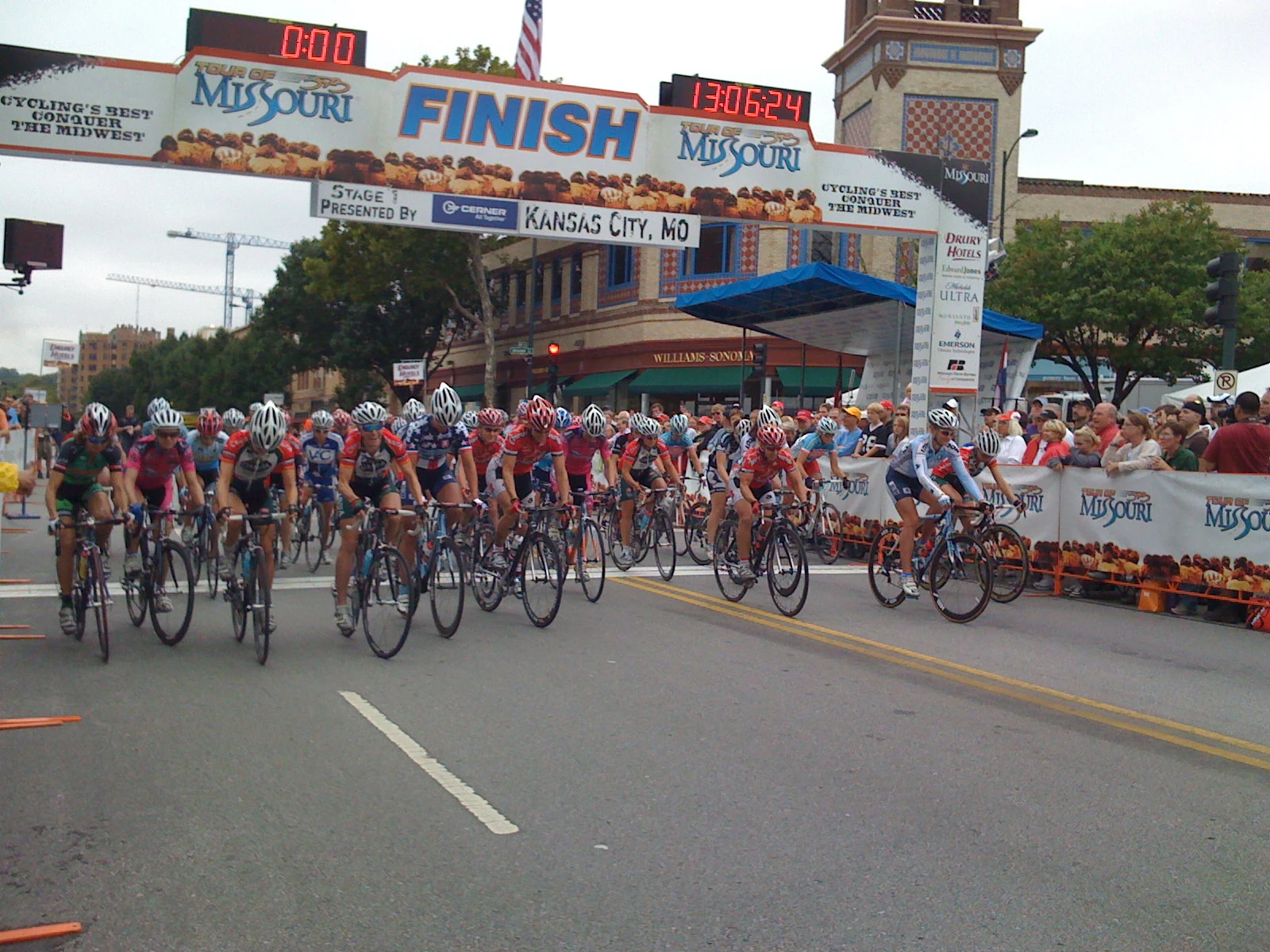 Anyway, it was good. Exciting. It’s weird seeing all these people that you see through out the season out of place in Kansas City. The women’s race was good. There weren’t a ton of riders there, maybe 40 or so, but they were the best criterium riders in the country. Brooke Miller, current criterium and road champion won. Catherine Walberg finished 13th. She wants a do over. Sorry. No do overs in bike racing. Columbia set the tempo the last 10 miles. Mark Cavendish made the men’s field look silly. I was standing at 175 meters and he was coasting, looking around when everyone else was sprinting full out. When he started sprinting full out, I guess he didn’t have much of a problem winning.