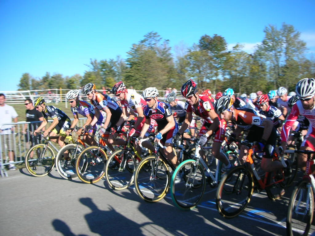 Got in the car Thursday night after standing in my garage for an eternity building cross bikes and drove the 10 hours to Cincinnati for 3 cyclo-x races. That is so cool that the promoters got together and have that many races on one weekend. Anyway, it drew a pretty good field in both the men’s and women’s fields. Actually really good fields. Katie Compton, Georgia Gould, Sue Butler, Jeremy Powers, Barry Wicks, Jerimiah Bishop, plus many more. Anyway, the course was pretty bad. It hasn’t rained here in months and it was bumpier than sh**. And there were a million u-turn corners. Very hard course to get any sort of rhythm on. And I had very little rhythm to dance to today. There were over 50 starters in the men’s race. I started OK. Got into the grass in 6th, behind Eric Tonkin. It was so tight for the first few minutes I could talk to him. Not a normal cyclo-x thing. He was having some cornering issues and it was gassing me. A big gap and then a hard acceleration. So, after a lap and a half, Jerimiah Bishop, Troy Wells and a couple others went by. I felt like quitting and saving it for the weekend, but thought there might be an outside chance that I could still finish in top ten and get some UCI points. But, I never got going and ended up 13th. So I’m steadlily moving down in results in UCI races weekend to weekend. Last race 12th’s. This 13th. And it wasn’t an easy 13th. Not that cyclo-x is ever easy, but this seemed extremely painful for some reason. Probably because it was in the mid 80’s temperaturewise. And it is supposed to be the same the next two days. Great! I’m not doing so well in the heat this fall. My travelling compatriots didn’t fair so well either. Catherine Walberg returned from Europe on business late Wednesday night and got in to the van at noon the next day. She took a bike with here, but only rode it a couple days in Paris and hadn’t been on it for most of the past week. She tied me with a 13th place finish. Bill Stolte came looking for one measly UCI point for the weekend. Not today. He was 25th, which is the last paying place ($19). He had some mechanical issues and had to make a few stops into the pit. It should go better for him the next two days I’d think. So, two more painful days for me to look forward to. At least it’s a weekend and we get a reprieve and don’t have to endure the stocks market woes/economy disaster for two more days. Cycling is a simple life in comparison. Results from my recollection as follows (don’t hold me to these!).