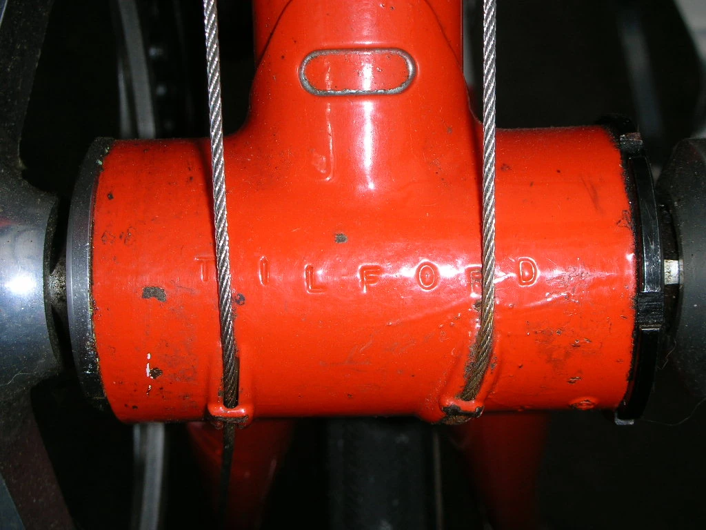 Try to make out the name on the chainstay of the first frame on the right. (hint-double click on the photo and it’s easier to read). The rest are photos are of the bike in my basement.