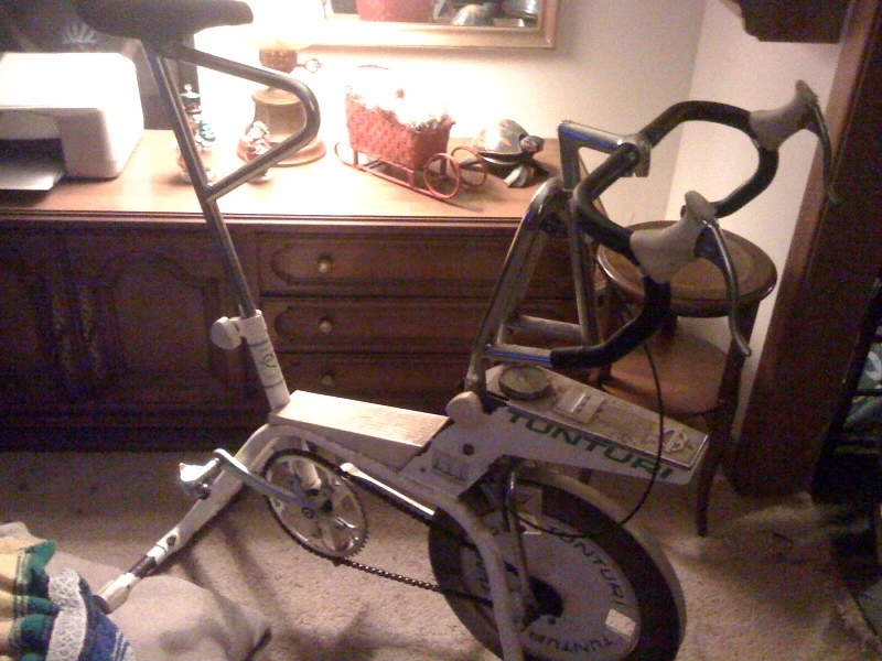 I have tried about every indoor trainer available on the market. When I was an intermediate (young junior) I started out on rollers. I didn’t have the money for Al Kreitler rollers, even though they were made in Kansas, so I had some Italian brand. I raced roller races every winter for years. From there it was a “squirrel cage trainer”. Nothing good there. When I rode for Schwinn they gave me a Velodyne. It was the first trainer that electronically controlled the resistance. You could put different chips into it to ride different race courses. I sold it to Andy Hampsten for a grand or so. He took it to Europe I think. I had ridden it maybe 4 times. I figured at that rate, I could buy 4 plane tickets to San Diego and train at 75 degrees. During this time, I bought a Tunturi erogometer. Even with everything new out there, I still ride the 25+ year old Tunturi ergometer. I got it at the bike show in the 80’s when Interbike was still in Long Beach. At the time, it was the cheap version of a Monark ergometer. We rode the Monark ergometers at the Olympic Training Center mainly because of Eddie B. Notice, because. Everyone hated ergometer tests. But, Eddie put a huge emphasis on them. One winter he picked a trip to South America exclusively from the results of riding indoors. I eventually became a expert at the tests (and fooling them).
