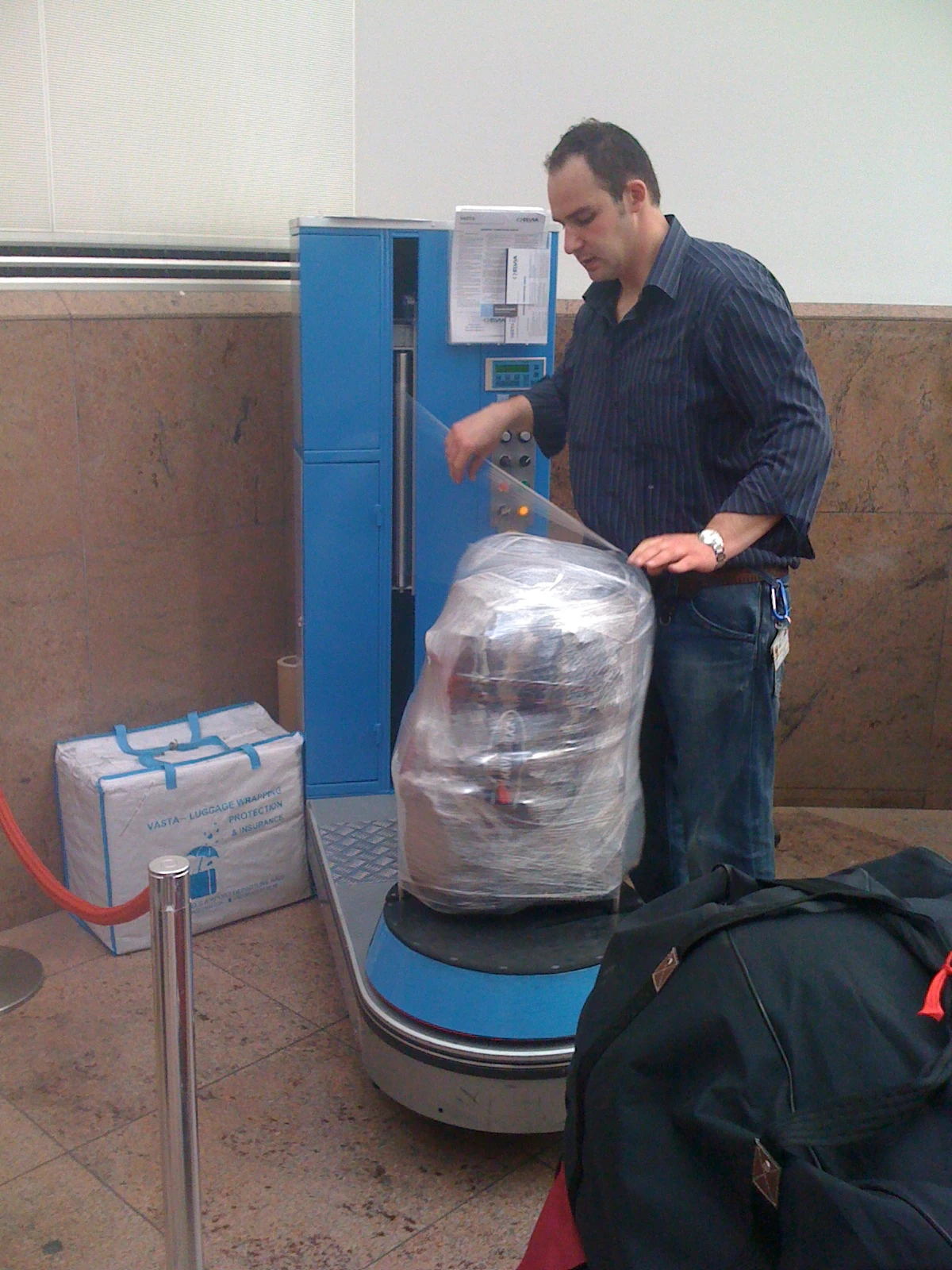 This is the trend in Europe. Plastic wrapping your luggage before you fly. It wouldn\