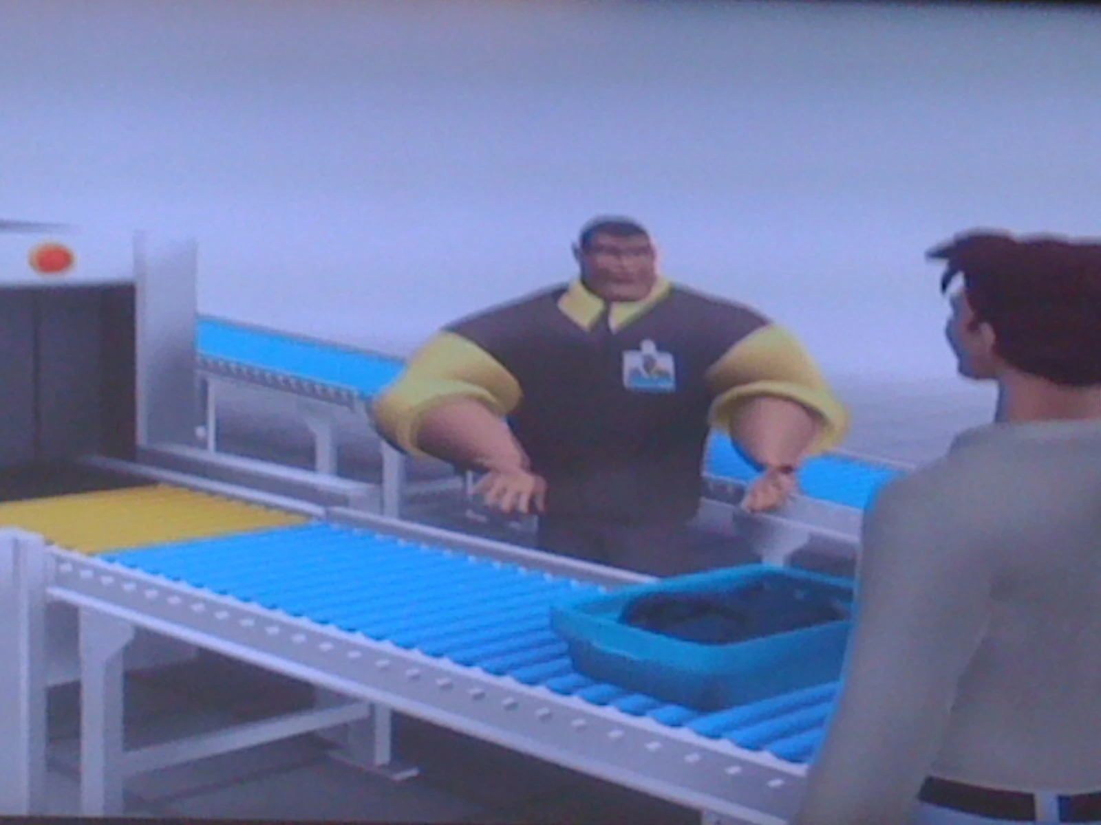 This is a photo of the video they show as you enter the securtiy area in Brussels. Check out the size of the agent guy.