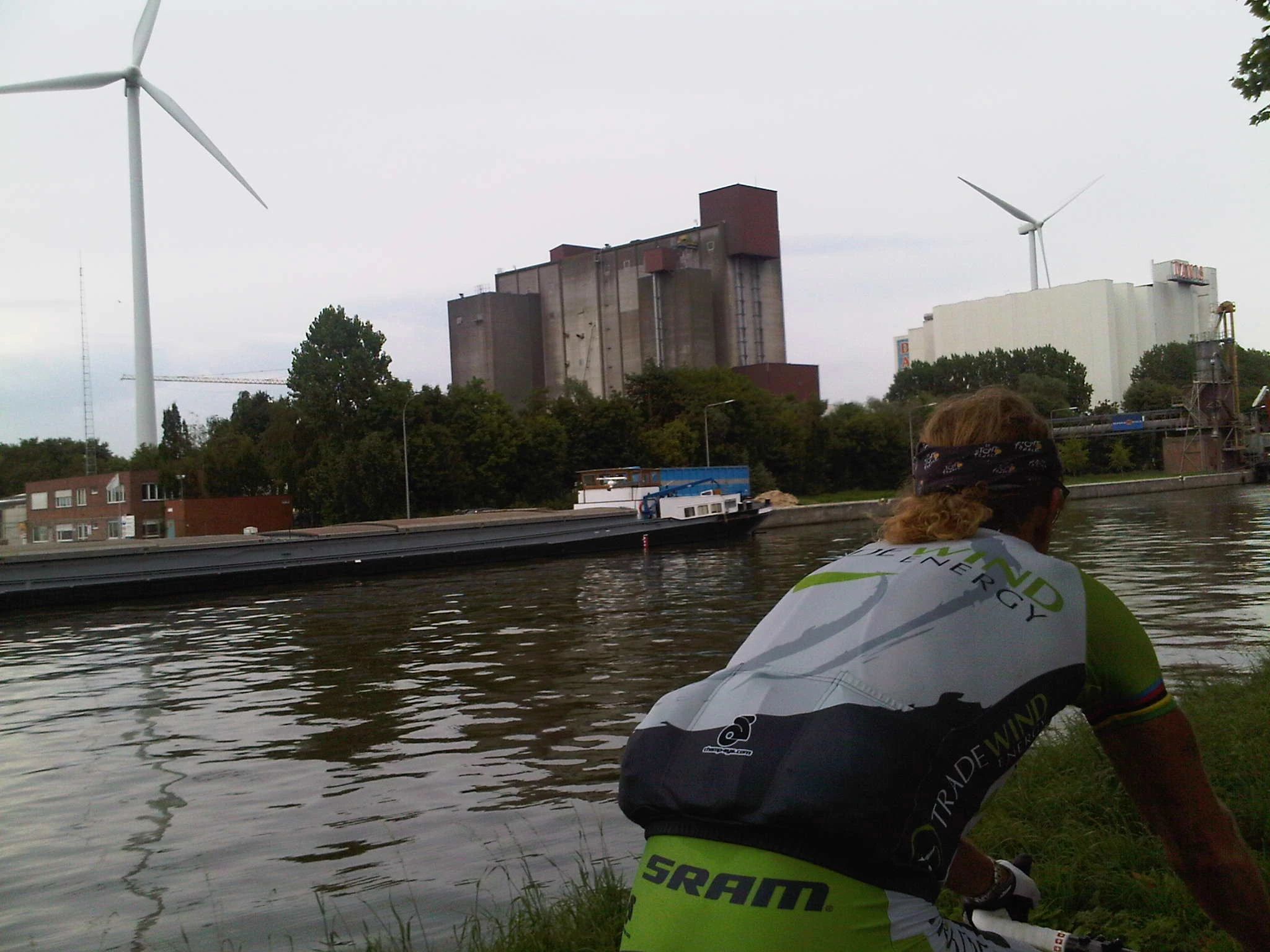 Riding along the canal with the wind turbines in the background. Good for Tradewind Energy’s future.