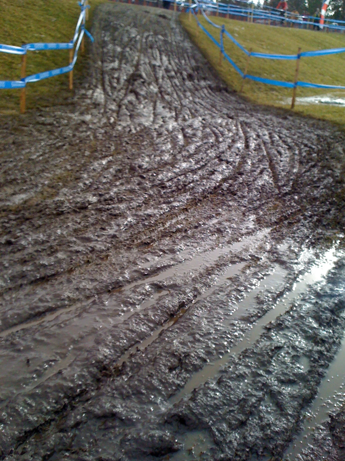 Well, yesterday wasn’t officially a race. Just a qualifying time thing. Today was a race, but luckily for me, not that stressful. The weather wasn’t conducive to being warm today. Really wet and temps hoovering just above freezing. I was nearly completely waterproof pre riding the course at 7:30. It was pretty sticky. It took lots of energy. But the moisture throughout the race and later on during the day made the course much faster.