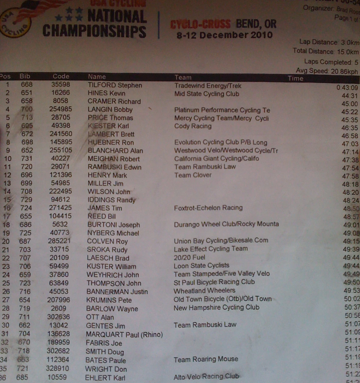 Steve, Congratulations. Greta ride in nasty conditions indeed. Wanted to say hello at Jinglecross but did not get the opportunity to speak with you. I grew up in Topeka (live in Coralville Iowa now) and remember you hanging at the Schwinn shop on 21st st. Good luck in Belgium next month!!