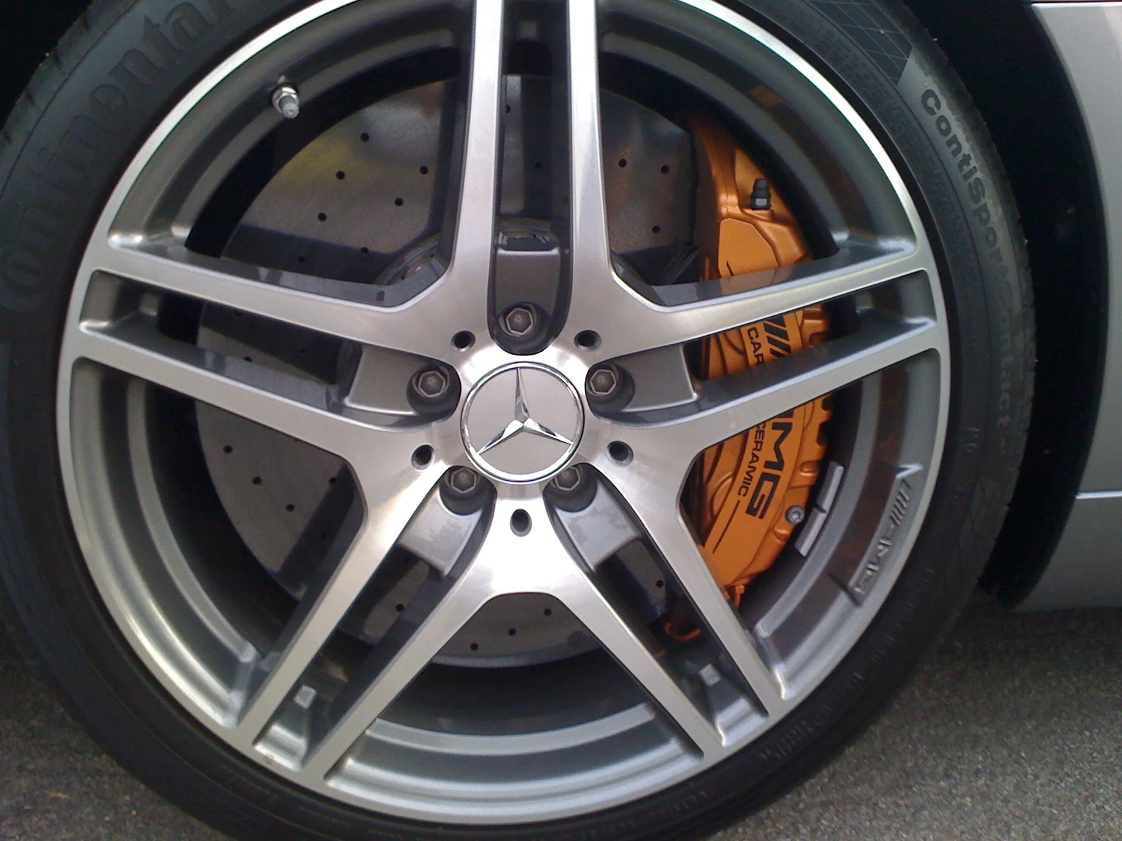 Check out the size of these front brake calipers and rotors. I think the rotors are ceramic?