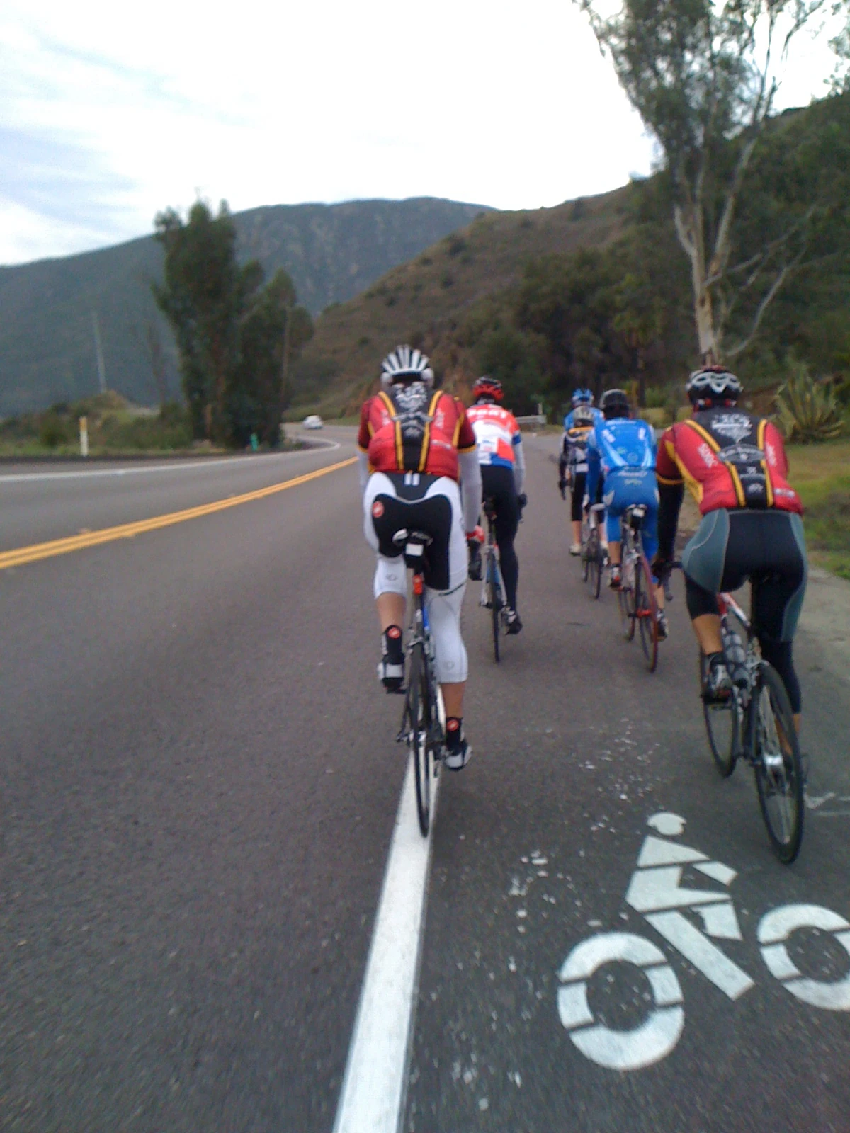 My little group for the ride back to the coast. Every rider here was on carbon. And not one duplicate frame. Colnago, Specialized, Motobecane, Wilier, Orbea and lots of others. My ti Eriksen was the standout.