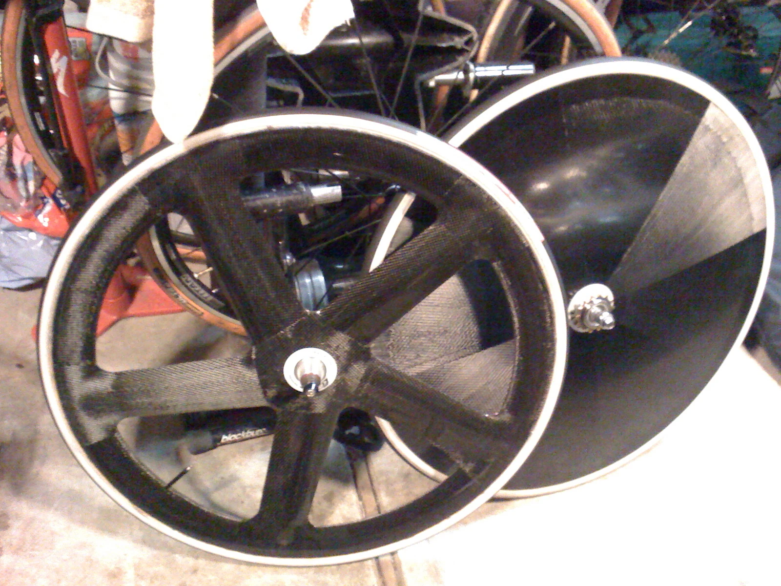 Here are some super high rent wheels that Jim has. Pretty crazy. More expensive than my road bike.