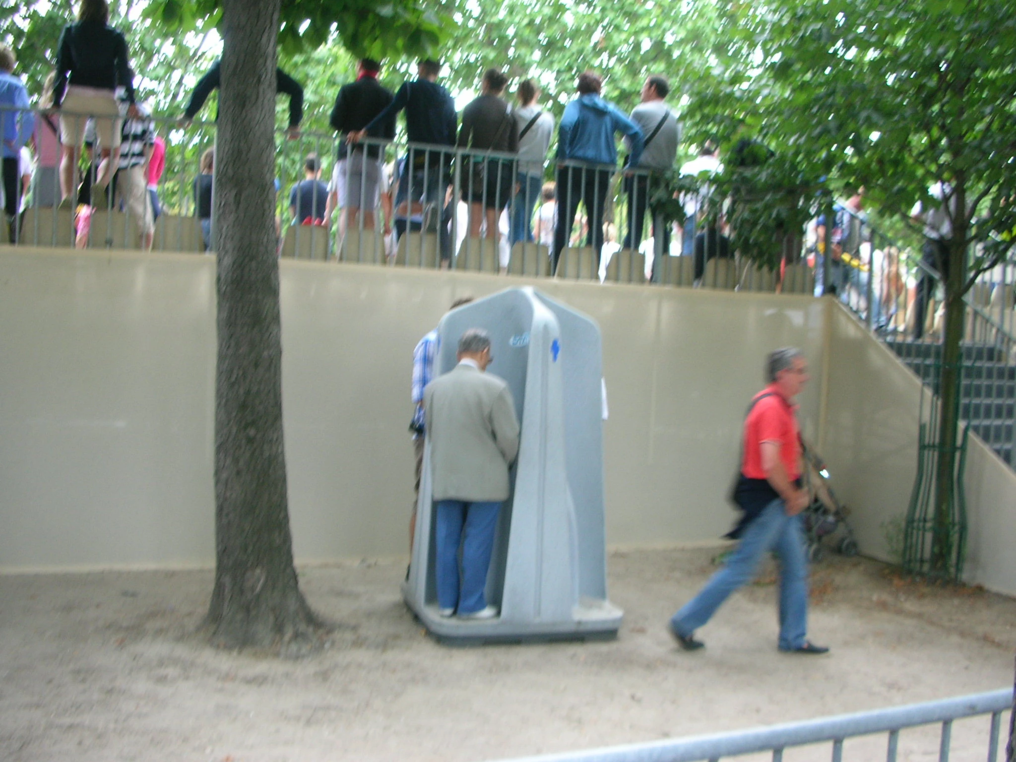 In Paris you have to usually pay 1 Euro to pee in a toilet. Here is the outside version.