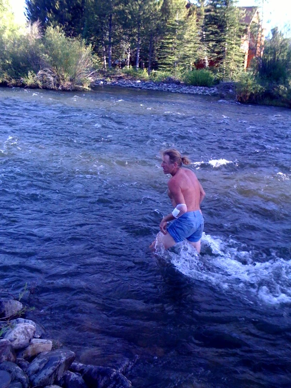 We went over to Breckenridge and rode the Colorado Trail for a few hours. There is no air at 9000 ft. Let alone at 12000. I was unscathed until about a mile from the bottom. I was descending through some of the dead pines and caught my forearm on a dead branch sticking out. It ripped a deep hole in my arm. Like a few stitches deep. Vincent’s wife, Lisa, is a doctor, but didn’t have any stuff to sew it up with. I usually carry that with me, but didn’t. I made a bunch of phone calls, but finally decided to just piece it back together with Steri-Strips and the cover it with Tegaderm. As long as it doesn’t get infected, it is fine with me. I have so many scars on my body already that one more doesn’t really matter much.