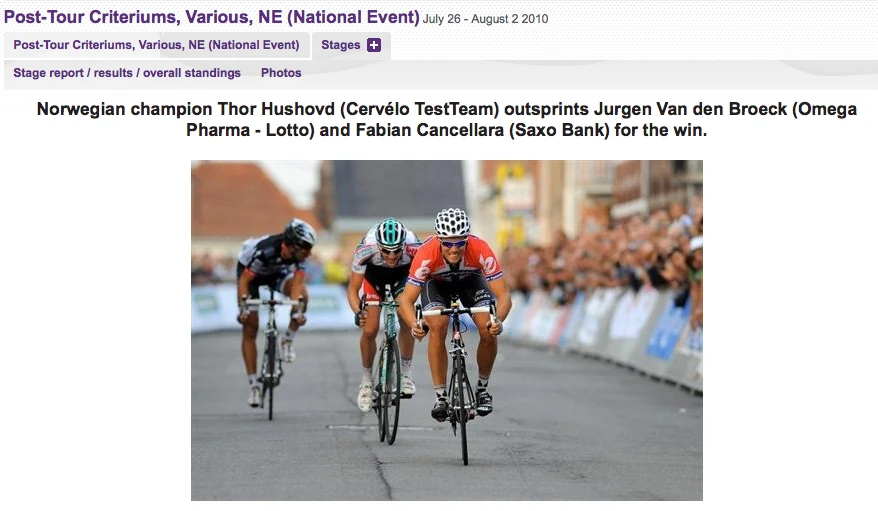 Natourcriterium Roeselare - Roeselare, Belgium July 27, 2010 by Steve Tilford 28 views My 10 -1 bet was on Van den Boeck. Michael Fatka was the only one to take me up on it. Milk shakes. That could be expense. [