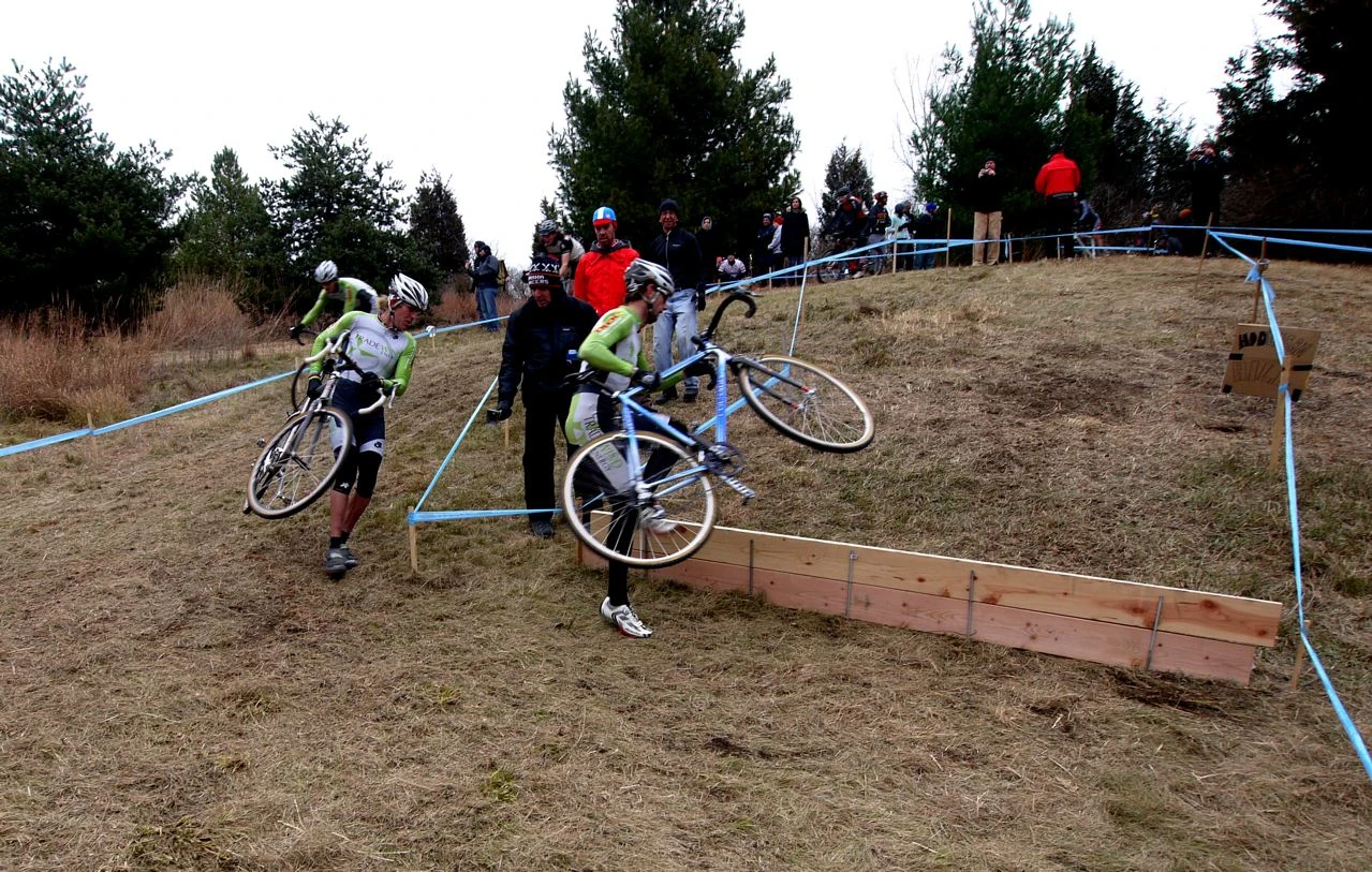 Bill and I following Brian early on the first lap. It was a weird dismount, barrier combination. Hard to figure out how to do it quickly.