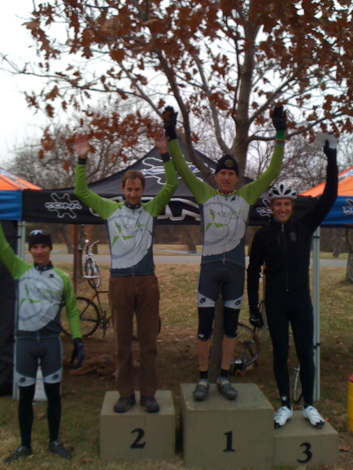 Not a pretty podium shot. Brian has to learn he only gets to put up only one arm for 2nd.