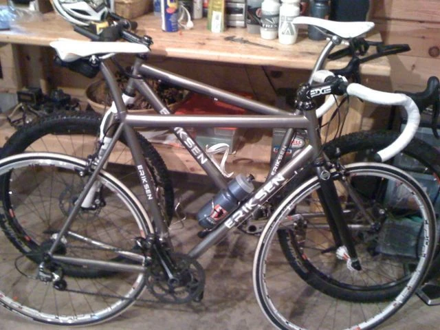I was remiss leaving out a photo of Dennis’ new Ericksen MTB. And road bike. The MTB bike is the new 650B standard. I rode this exact setup a few times last fall and if you only have one bike, this could be the perfect choice. And with it being made of titanium, it should last forever. Pretty nice duo of bikes there.