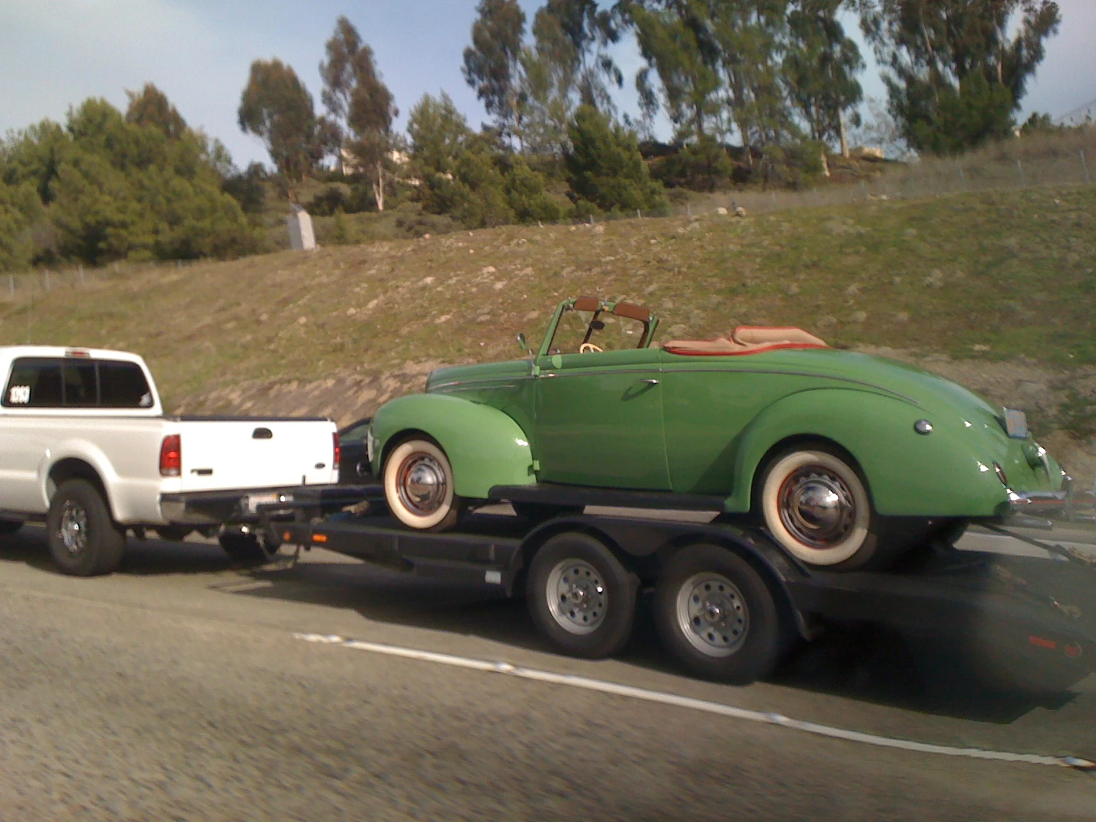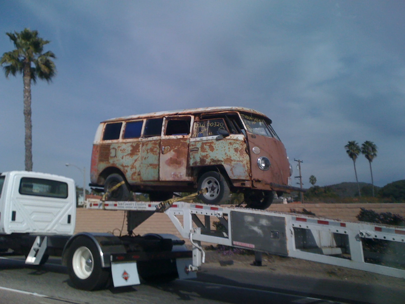 I passed this auto carrier on the drive up. There is a AMG Mercedes sitting right behind this beat up bus.