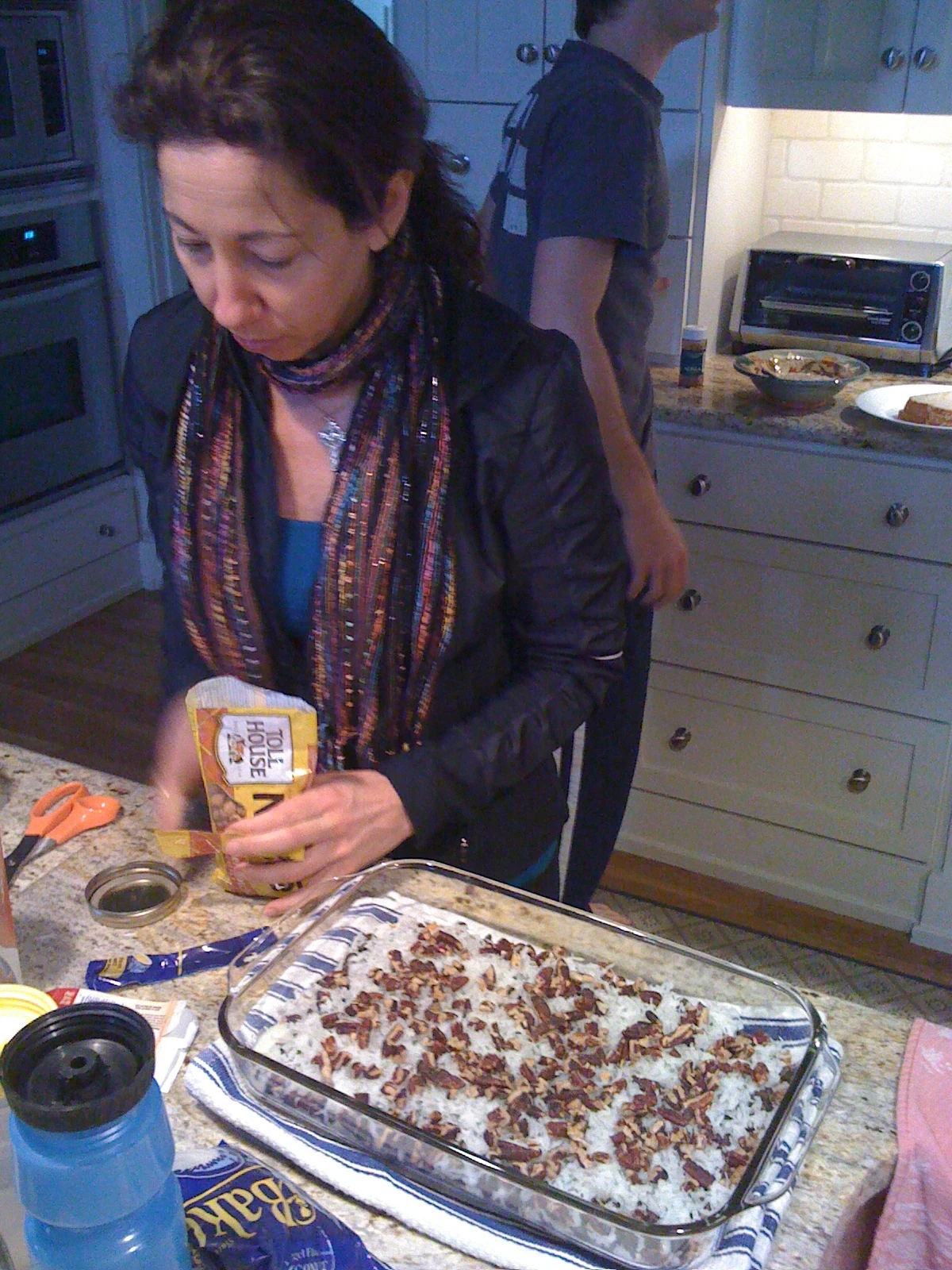 Maureen making killer bars for post race consumption. She thought we might need MORE calories, so she added an extra bag of butterscotch chips.