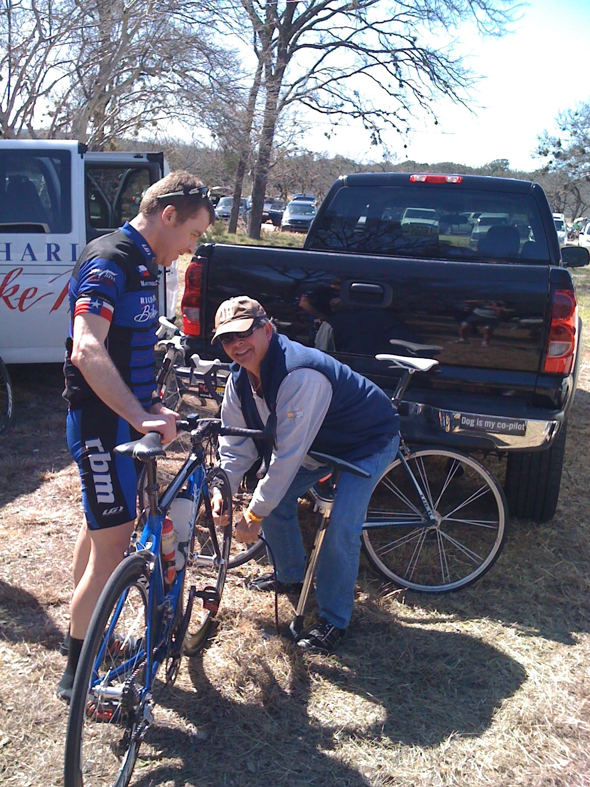 Pace Bend wasn’t the easy roll around race that it has been in the past, mainly because it was breeze/windy. And pretty hot for February. I’m not sure how fast the wind was blowing or from what direction, but it was windy enough to make the race hard. The Pace Bend race is 13 laps of a 6.25 mile course. There are two medium hills (big ring) and the rest just rolls. The start isn’t at the start line and a few guys, including Kristian House, missed the start. That was a drag for him. And, for the field. It’s amazing what the difference of one strong rider can make at an early season difficult race. I think it changed the outcome of the race a lot.