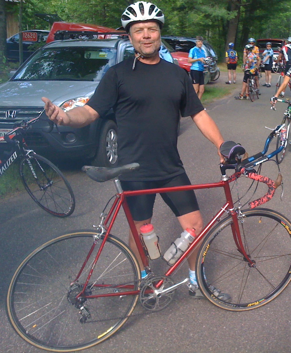 Jerome and his beautiful borrowed bike. He rode the whole 40 miles on this.