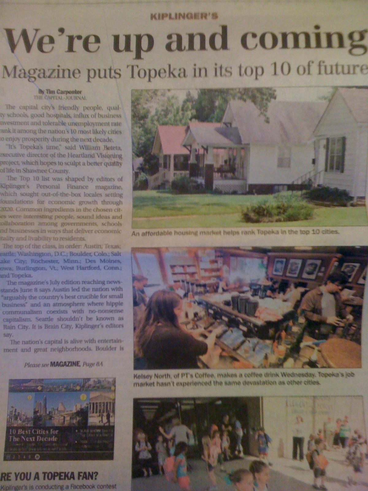 Topeka on the Kiplinger list of 10 best cities for the next decade. I\