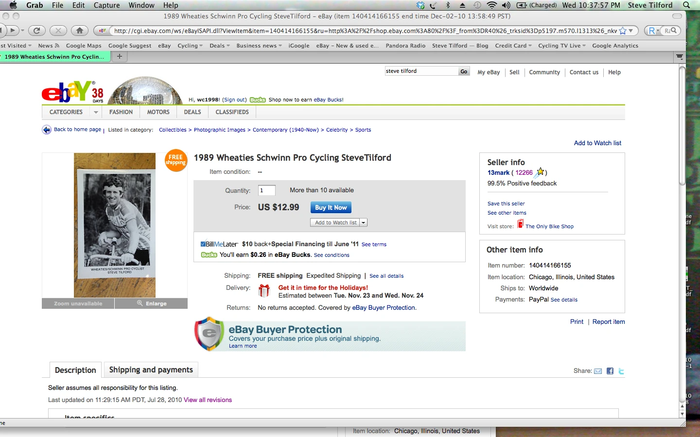 I saw this on eBay yesterday. (Click twice on it to enlarge.) If you want one, click here. Better yet, email me. I bet have have a bunch laying around somewhere and I’ll sell you one for way less than $12. Signed.