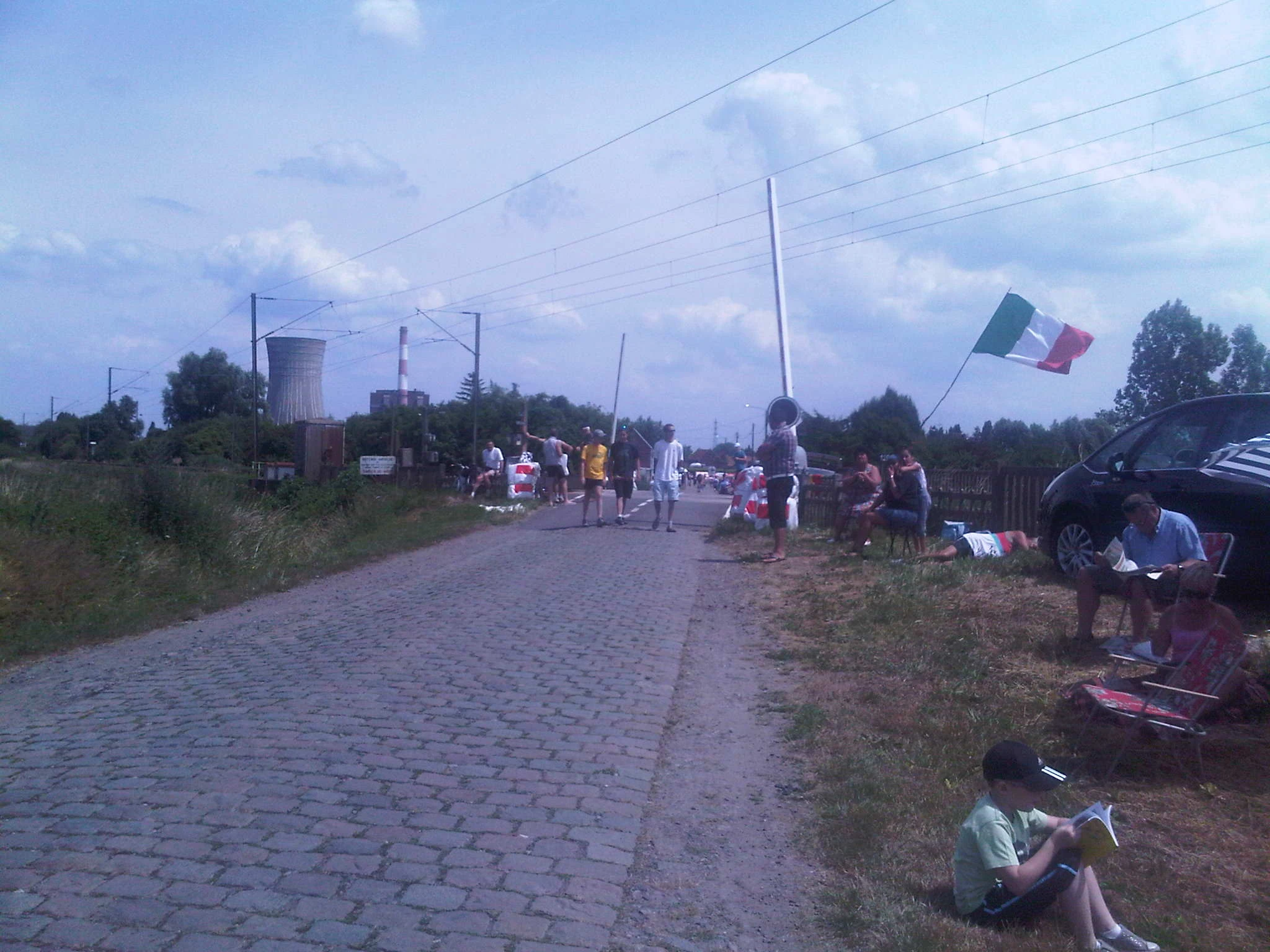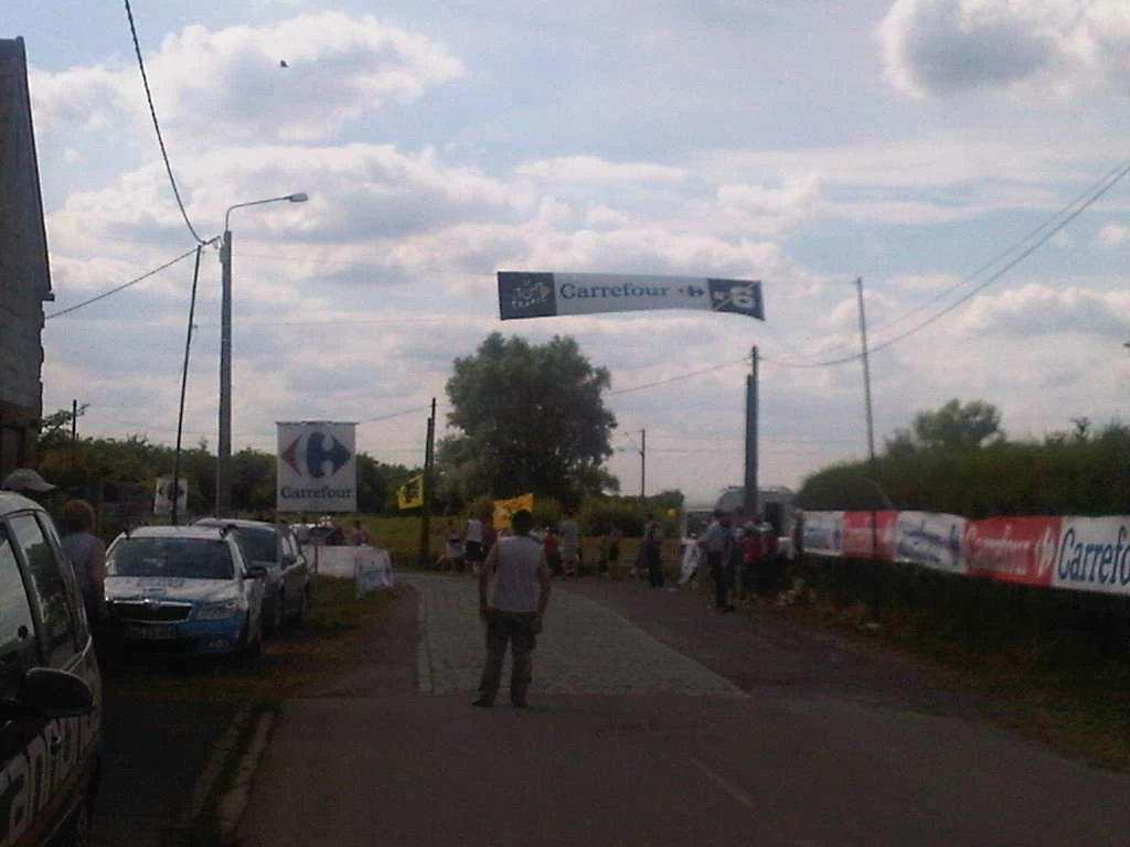 Here are some fun photos that Trudi sent this morning. She is “stationed” at Pave’ Section 6. Should be a interesting day. Like yesterday should have been. I totally disagree with the non-race status yesterday. I wonder if they are going to wait for Andy Schleck if he falls today on the cobbles? I think not.