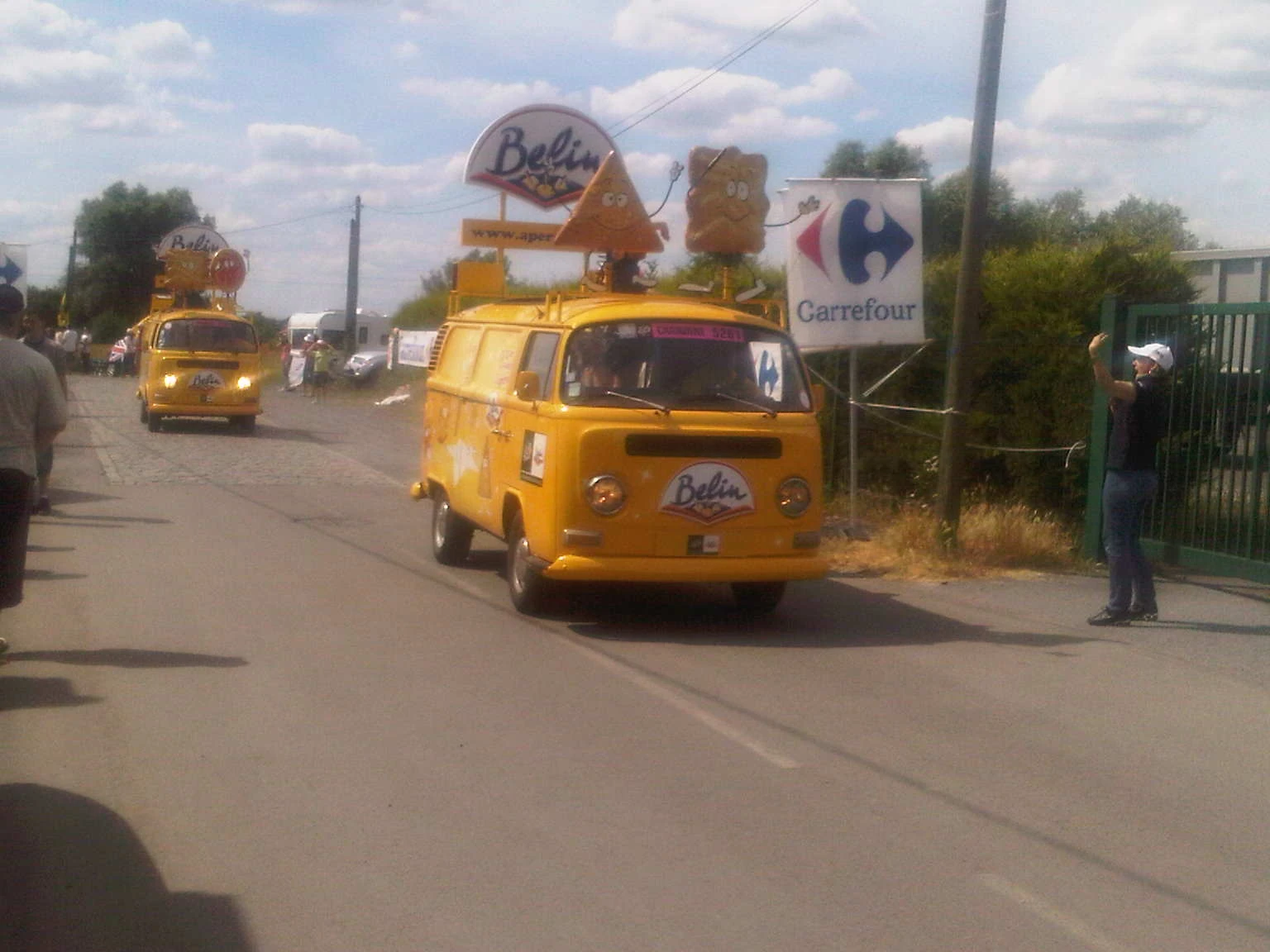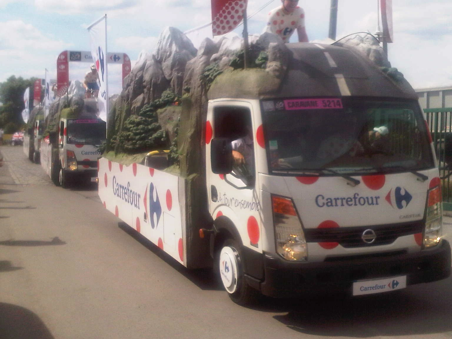 Some of the publicity vehicles preceeding the riders.