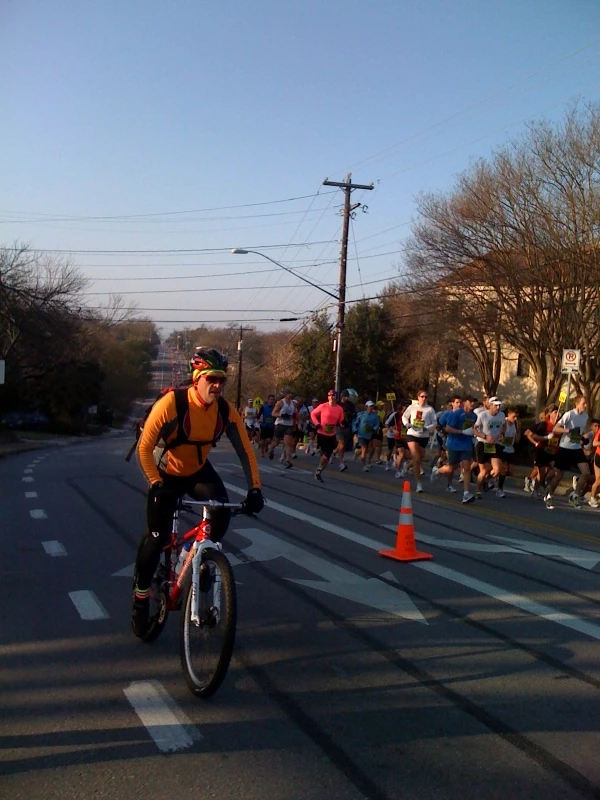 As a cyclist, I was almost more interested in the cyclists riding along with the runners, more than the runners. Many of them seemed so serious, much like they were in a competition themselves. Strange.