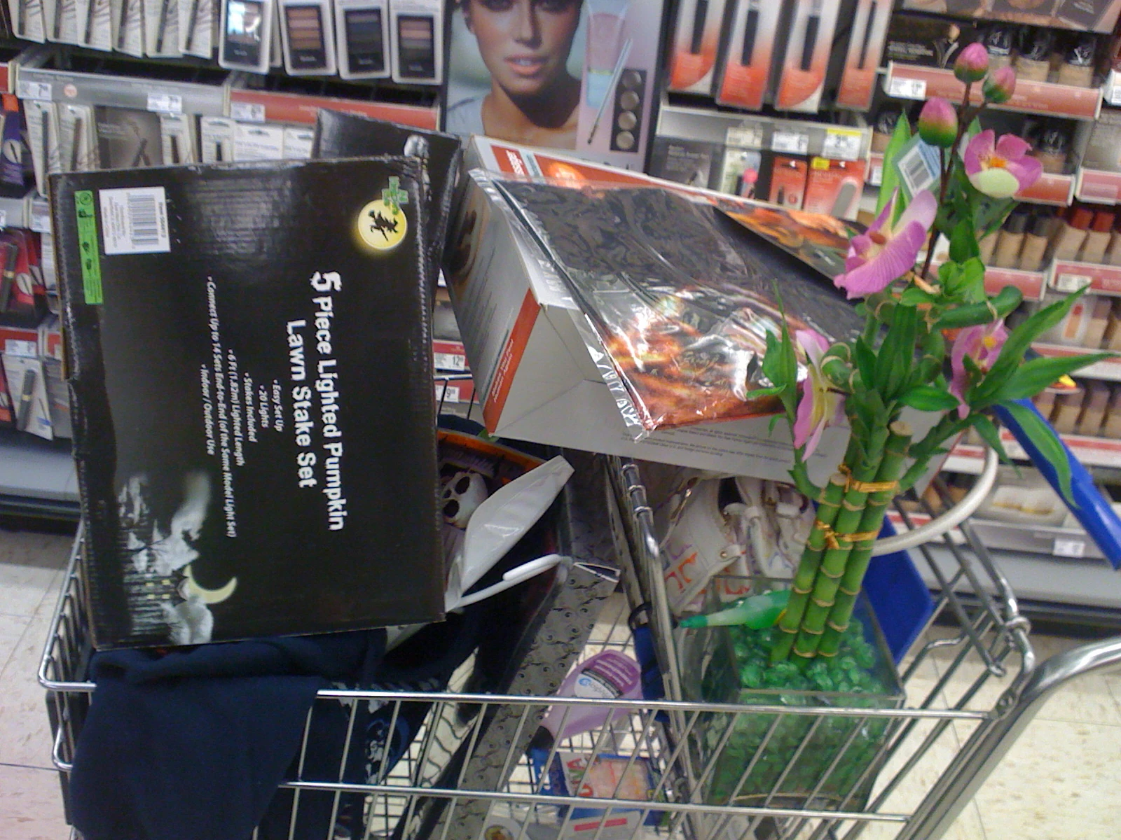 I couldn’t help but posting this photo. I rode over to the car wash at midnight last night to spray off my MTB bike. I coated the chain with diesel and then power sprayed it. Afterwards, I went across the street to Walgreens. This was the cart of the lady behind me in the checkout line. I had often wondered who bought all that junky/trashy stuff they sell at Walgreens. And here was a cart completely full of it. Plastic everything. Even bamboo. There were tons of people shopping there buying lots. At 12:30am. Makes me want to buy the stock.