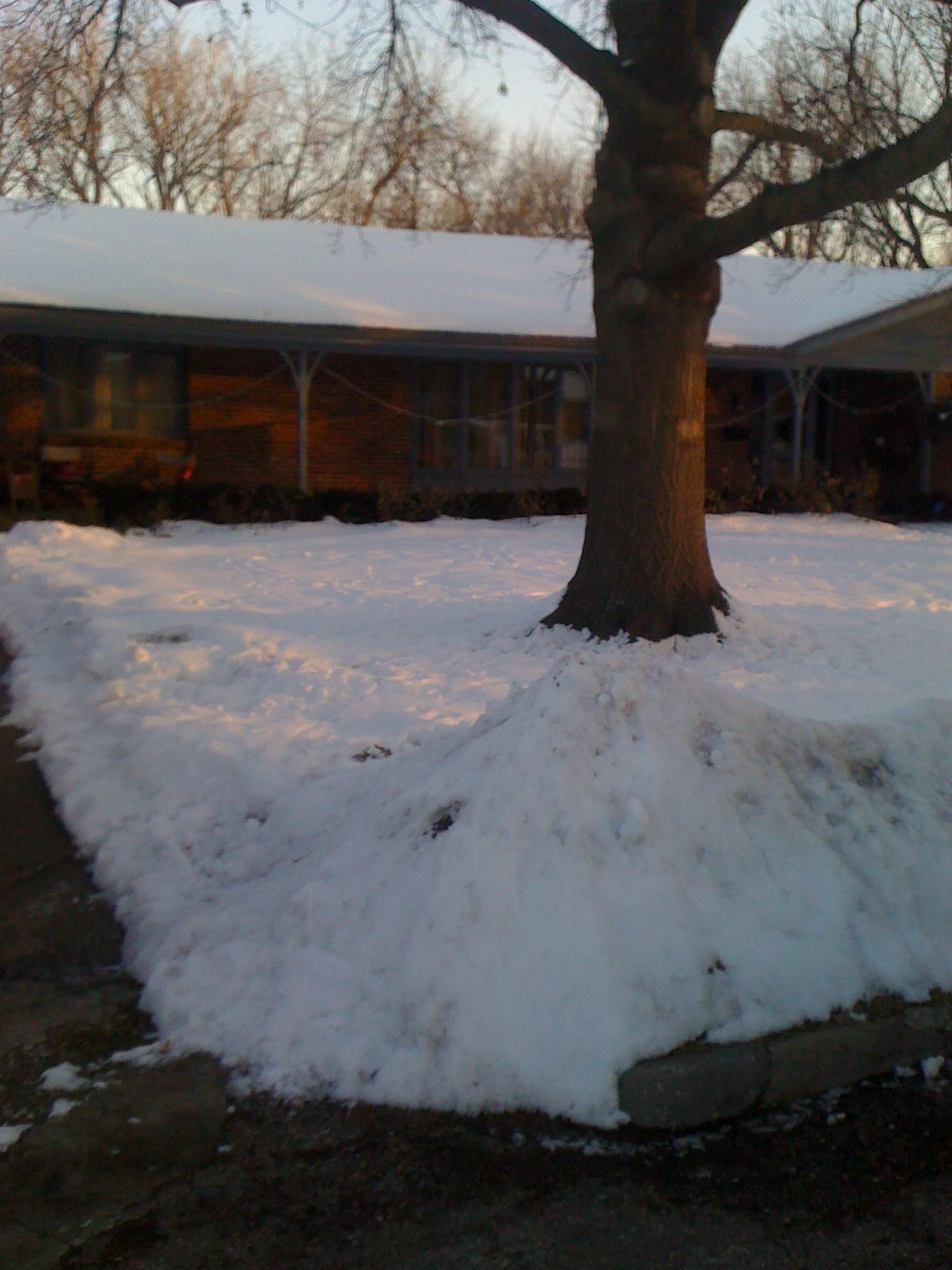 Shoveled snow in the front yard.
