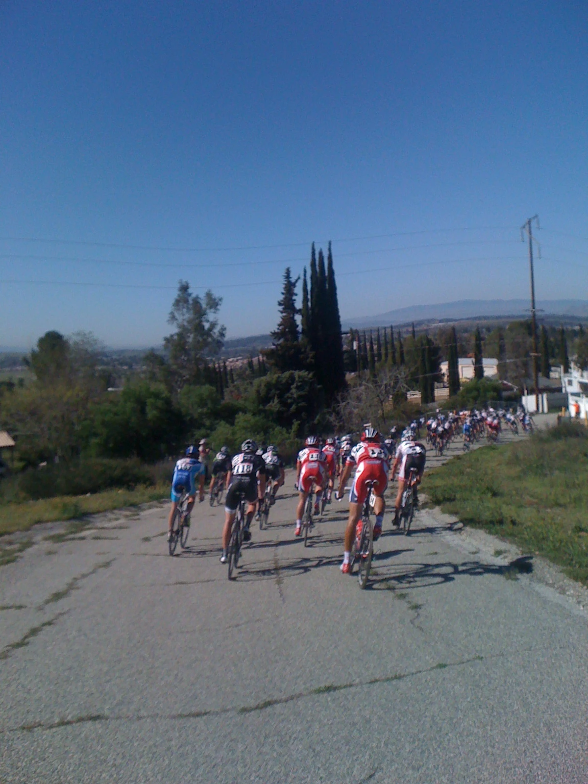 Three guys sprinted it out. I’m not sure the name of the guy that won. A California Giant Strawberry guy won. I heard he is 20 years old. If all that is true, that was a great result. People kept dragging in forever. It was ugly. I looked like a local Cat. 3 race finish in Kansas. Decimation.