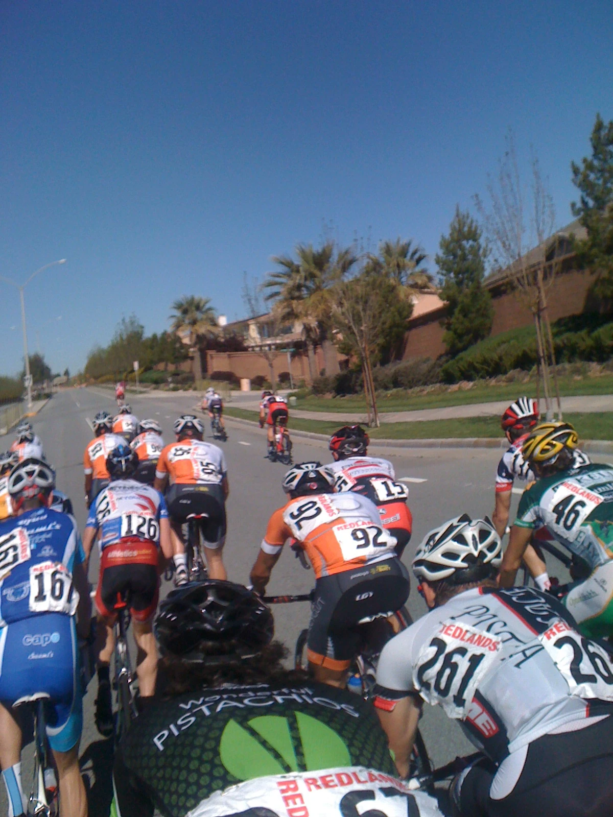 The race course wasn’t all that hard. Not really hard at all. But, it was hot. And it got hotter as the day wore on. The first lap was super fast. I didn’t really realize that until I looked at my average speed after 25 miles and it was over 28 mph. I was too busy breathing to observe most anything going on around me. I’m wondering if this is how most pack fillers feel the entire race. I was hardly even qualified for the pack filler status.