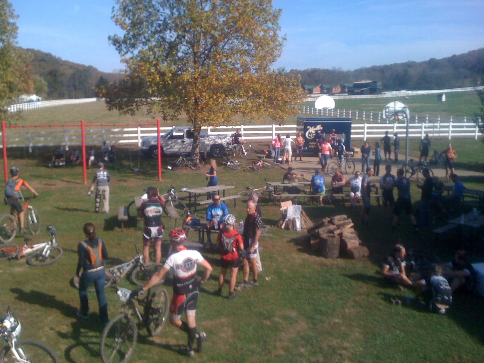 Like I said above, I was pretty good all day. The start goes up a mile climb and we took it pretty casually. There was $75 to go into the singletrack first and I led there, not because of the $$$, but because I’d followed guys into the singletrack the last couple years and it seemed to jack up my “flow”. It was nice being able to snake through the woods at my pace, not trying to look through a rider ahead of me to see the rocks, etc.