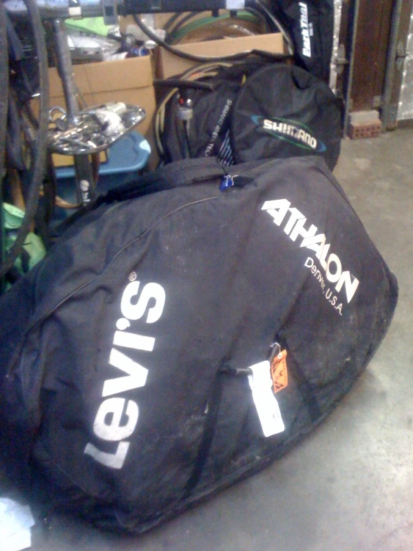 I loved those Athalon bags too, and stuffed three bikes in them to go to races like the Open des Nations, but I think mine weighed over 100 lbs. 3 bikes under 50 lbs is a monumental achievement. At Junior Worlds in 1990, Jeff Evanshine was so obnoxious that one of the team mechanics stuffed him inside one of the bags, zipped it up and left him in there.