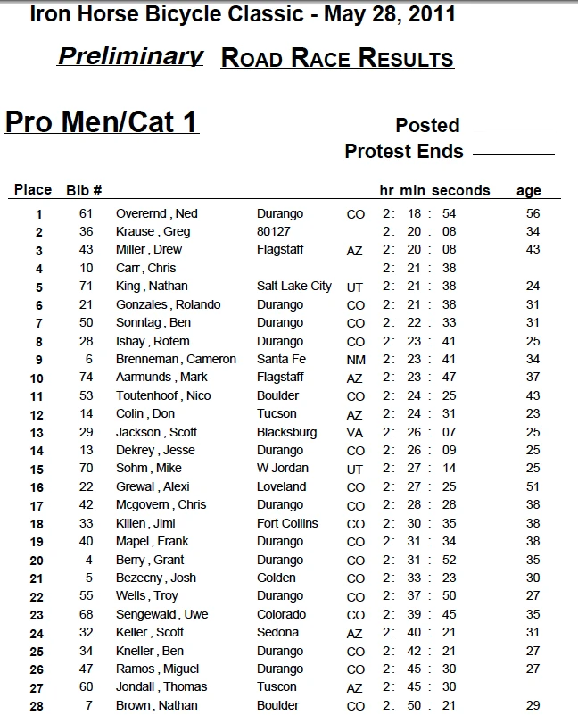 Ironhorse Bicycle Classic Durango-Silverton Results May 31, 2011 by Steve Tilford 3 comments 146 views Anyone see this? Ned never ceases…. [