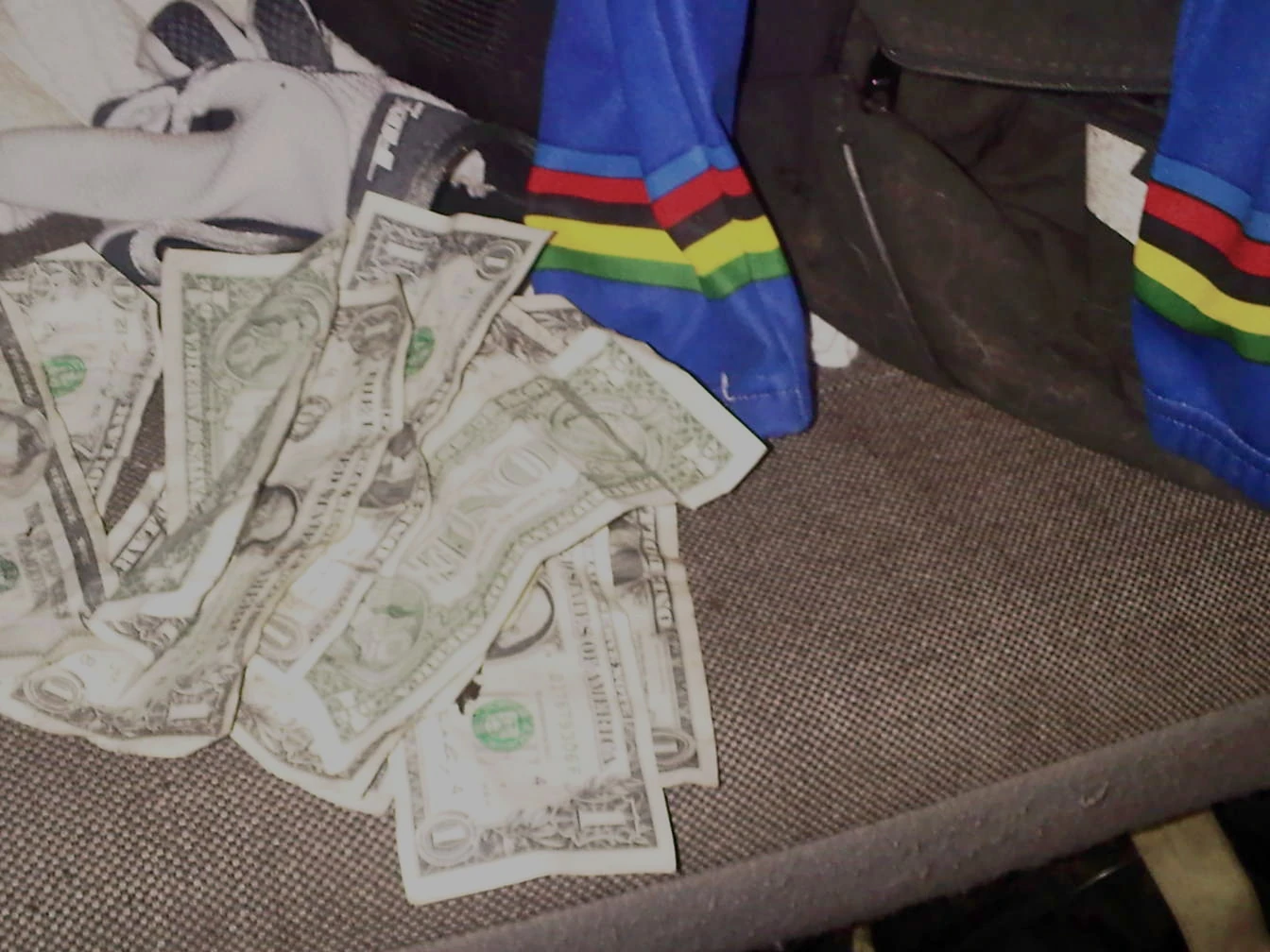 My pile of cash from the last couple laps, $14.