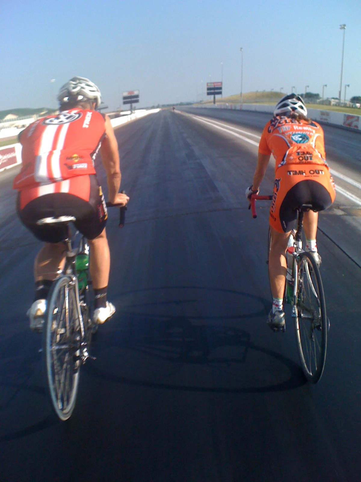 Bill and Catherine riding on the drag strip. It was pretty sticky and weird feeling.
