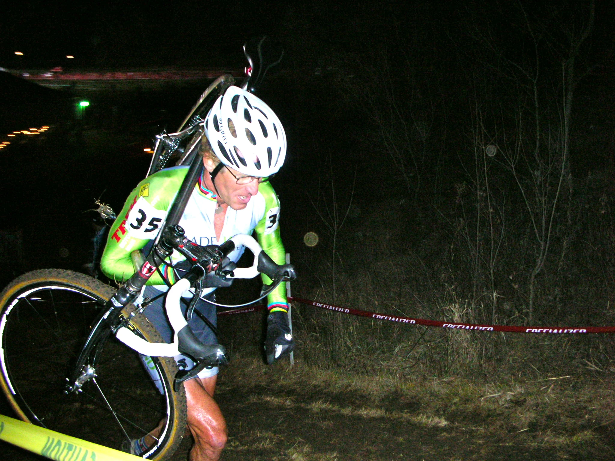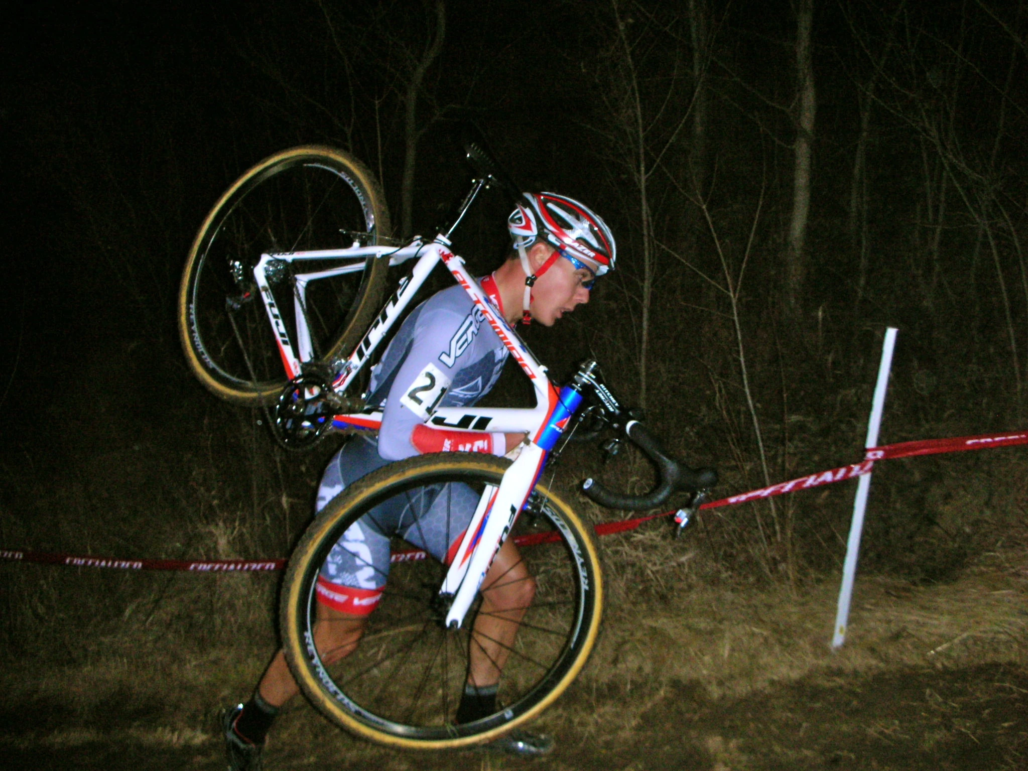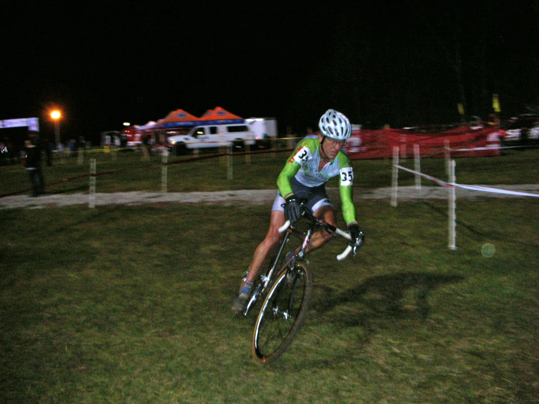 The race wasn’t that much pedaling. I know most the other guys in the race would probably disagree with that, but in reality, there were only two riding sections. One on the pavement going to the start finish line and one more riding towards the only muddy section of the course, a little dip you have to navigate twice in a row. Other than that, the selection of the race was the hill. The hill was muddy enough that nearly no one could ride it. I heard that Barry Wicks rode it most every lap. I saw Byran Fawley ride in just once, maybe Troy Wells too once or twice. I talked to Todd (Wells) after the race and he said he tried it every lap and never made it. I never attempted it once. But running it wasn’t easy either. It was probably 30 meters long and pretty steep, a little muddy, just enough to completely waste you. The one time I felt over my head was on the 2nd or 3rd lap when I got to the top of the hill and thought that there was no chance that I was going to be able to pedal after I did the descent.