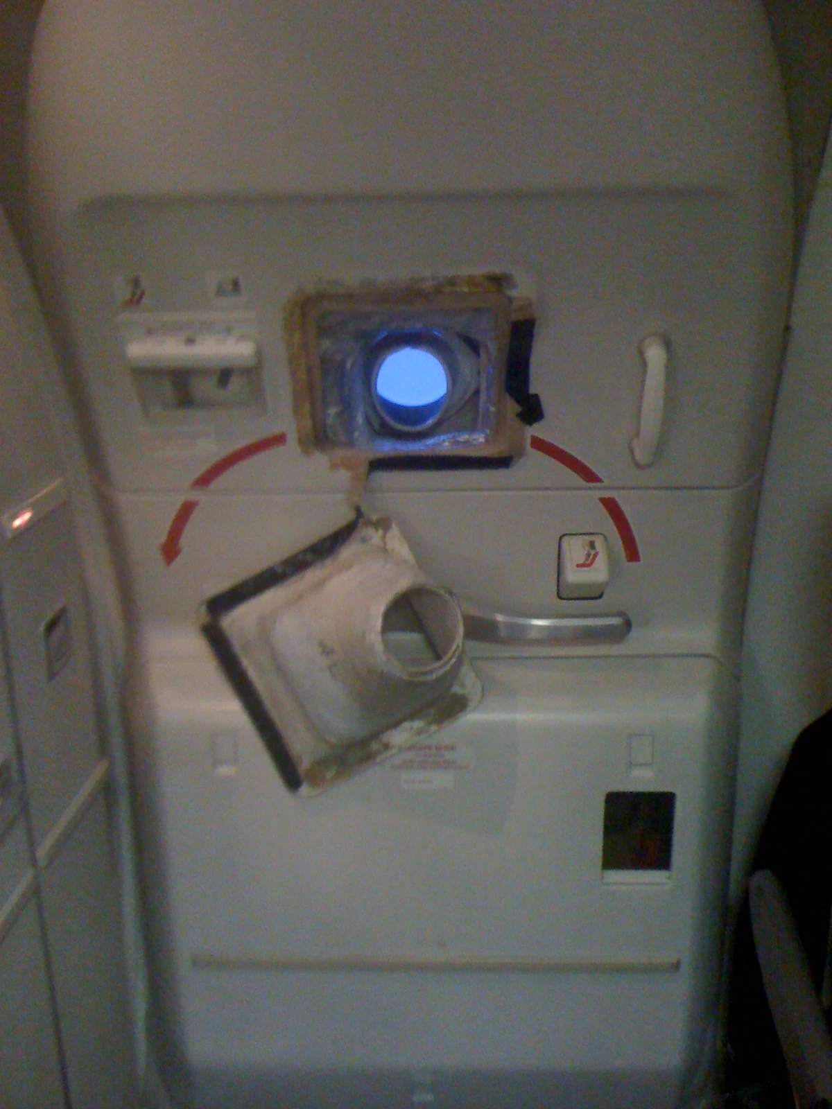 This is a picture of the exit door on my United flight from San Diego to JFK. Give you alot of confidence on maintence.