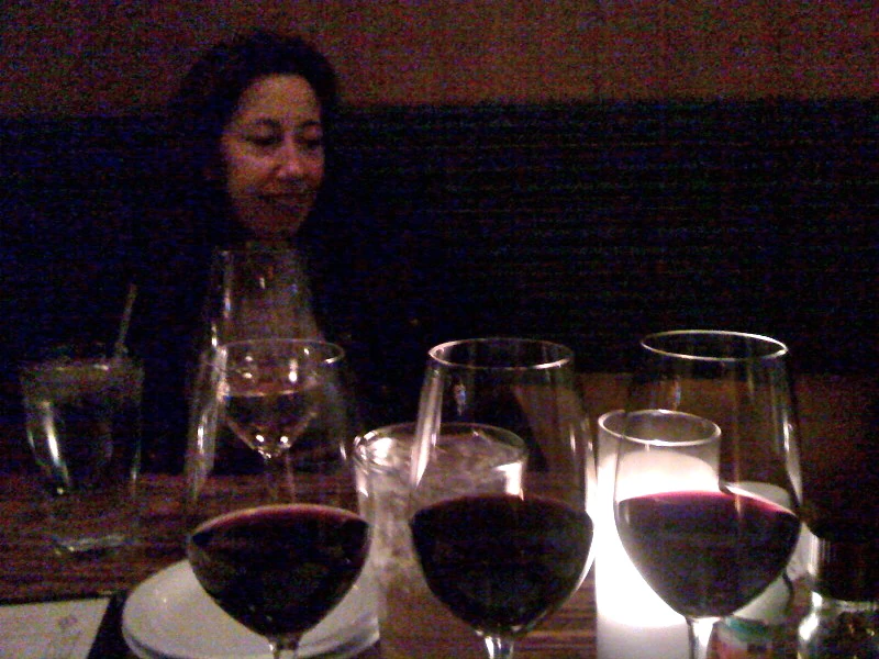 Ann and I went to dinner last night at The Grove Wine Bar. It is a great place. Here is a photo of sampler #6, Spanish Reds. Ann in the background.