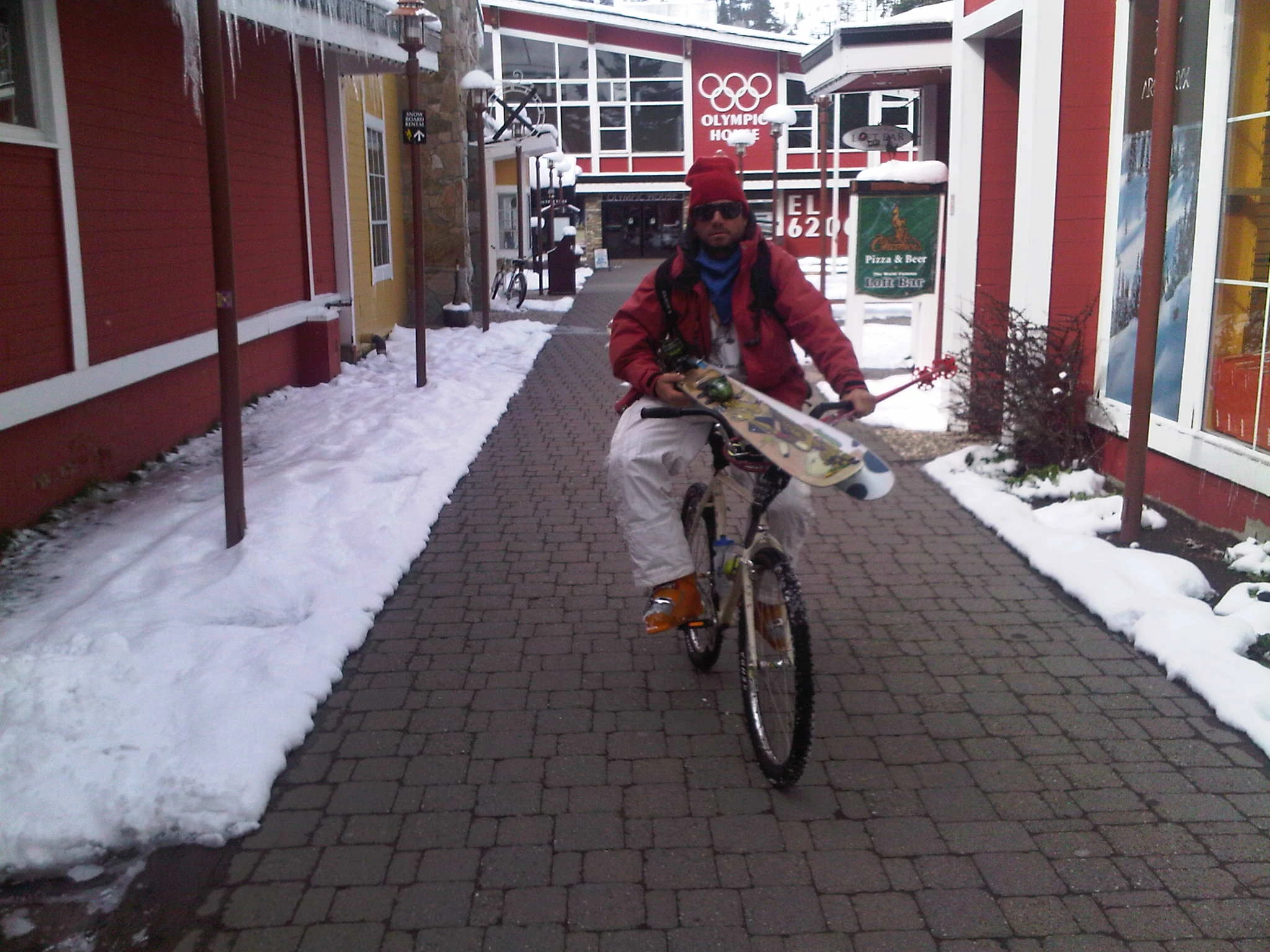 Riding in downhill ski boots, sweet.