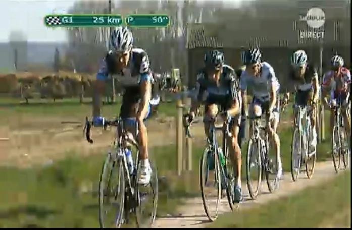 Here are some screen shots I took while I was watching the Dwars door Vlaanderen a couple days ago. I love it when it is a dicey road and you have to make on the road decisions. It’s too bad that that E3-prijs Vlaanderen and Gent-Wevelgem overlap this weekend. We won’t get to see the normal build up to Flanders and Roubaix.