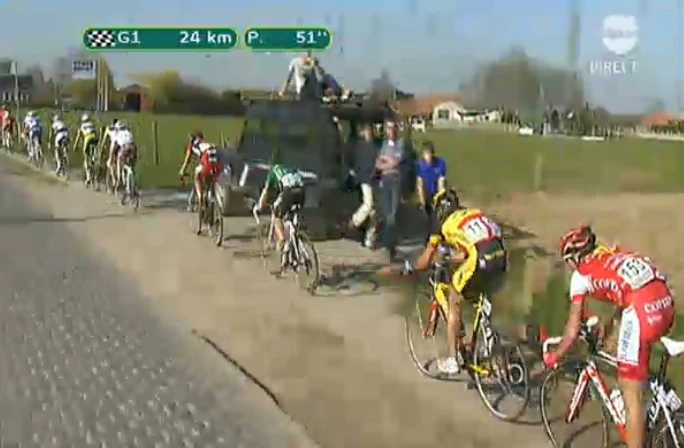 clearly a failure of the organizers to put up enough fencing that they must stay on the cobbles. / kidding…