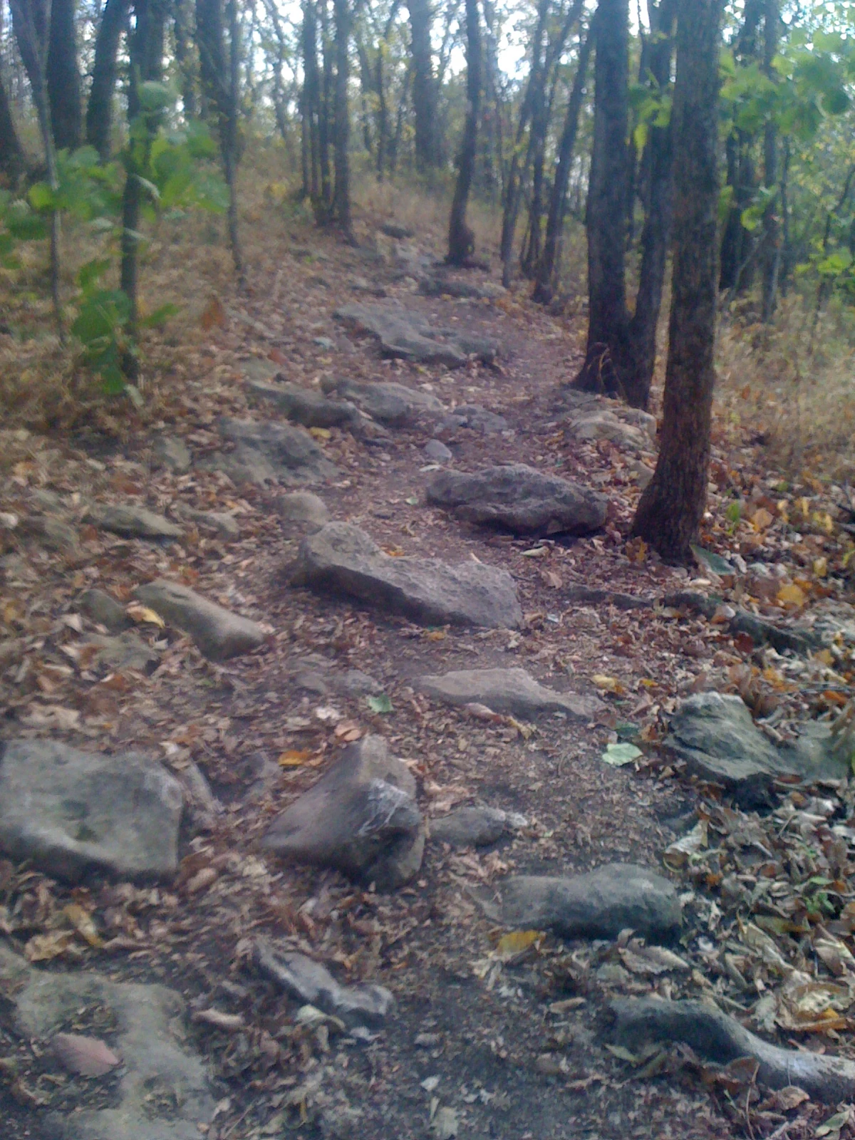 This is the white trail at Clinton Lake. This is the clear area. Most of the rocks were covered by deep leaves.