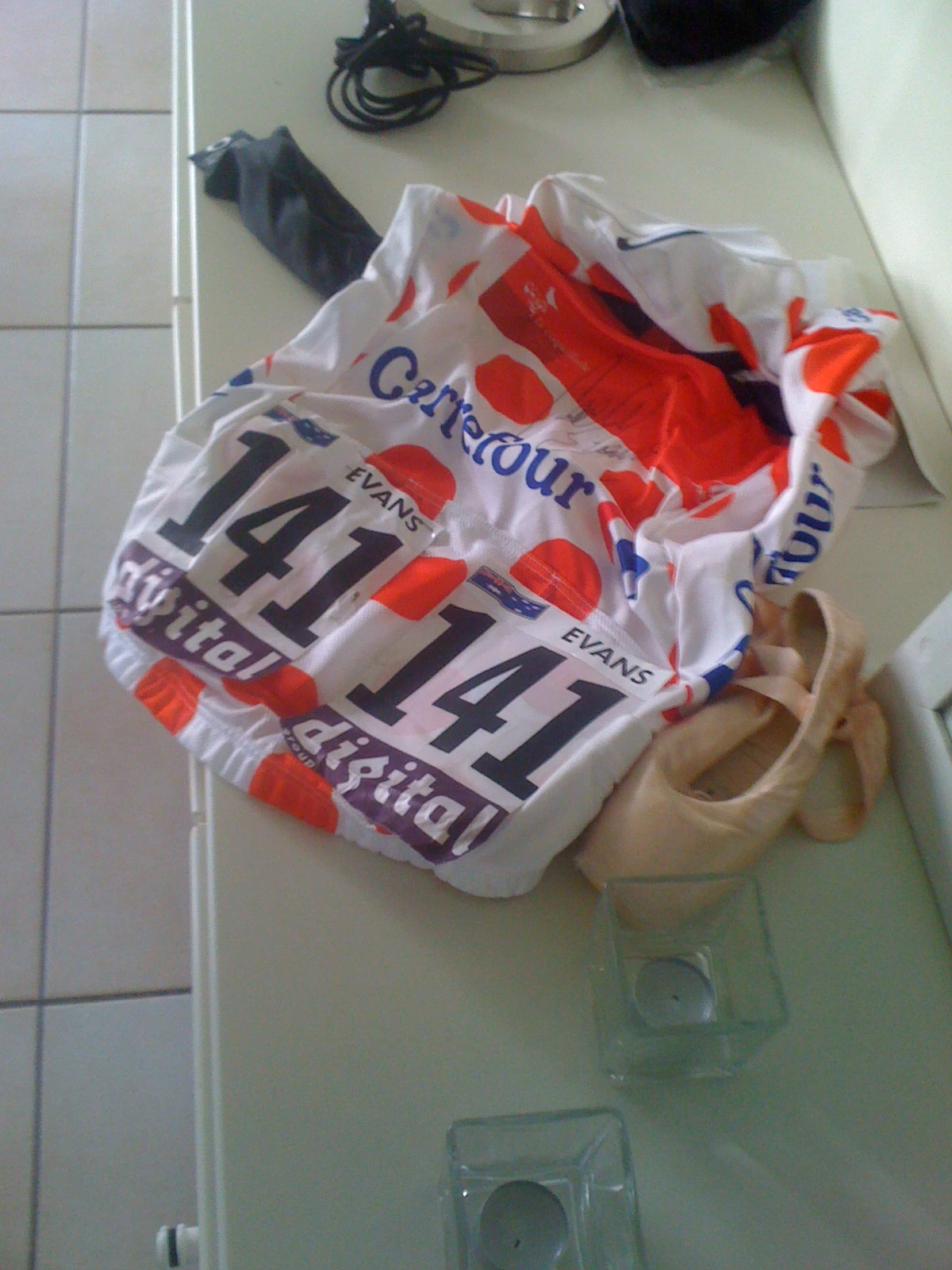 Cadel’s Mountain jersey was in a pile at Noels house.