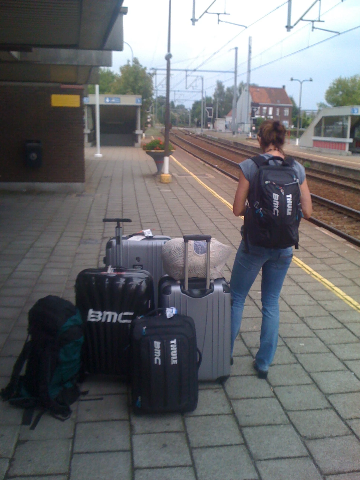 Trudi with all her stuff from the whole season at the Tielt train station.