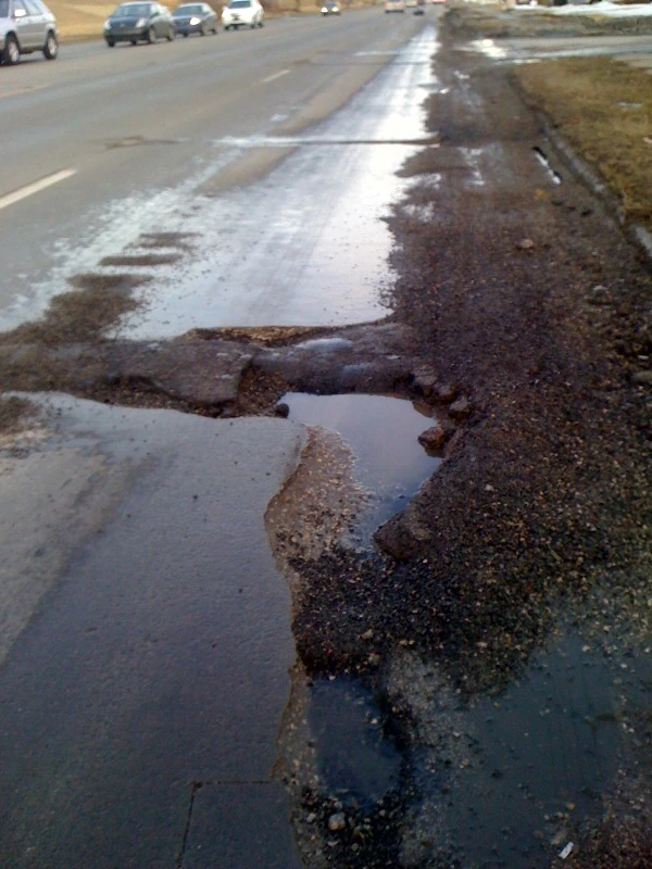 Areas where the temperature of the road crosses the freezing point over and over suffer the most damage from moisture as the water expands and contracts. Places which stay below freezing and don’t “cycle” suffer relatively little damage and asphalt is more porous than concrete so it generally deteriorates faster. Edges of concrete pavement often deteriorate due to softening of the subgrade which breaks the edges of the pavement. Just a short primer in geotechnics of pavement. It seems no matter what advances are made in the design of pavement we are always stuck with potholes. Whatever transportation funding is available it is never enough to both repair and upgrade our infrastructure, that is why as a nation we get D, see http://www.infrastructurereportcard.org/