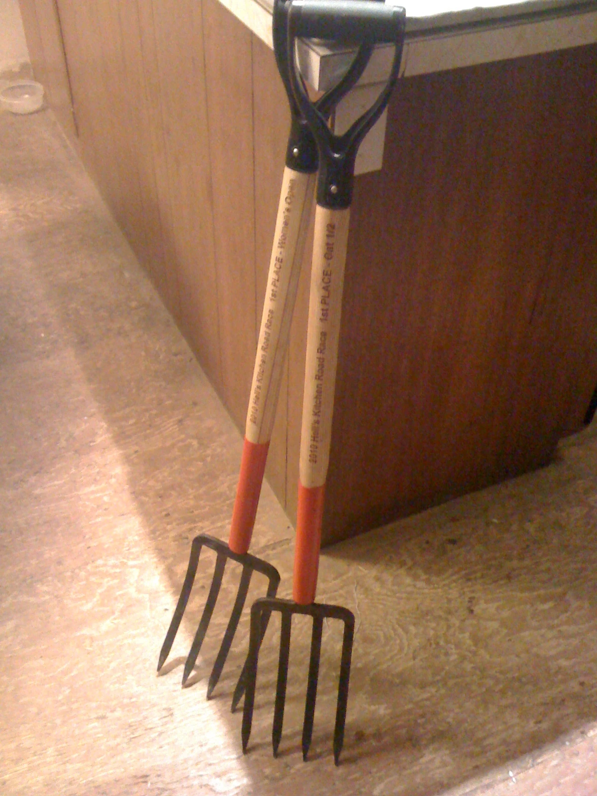 I try to win as many tools as possible at each event. I find it easier to win the women’s race than the PRO-1/2. I do have two of the pitch forks. The 2nd one in the picture is Catherine Walberg’s from the previous year.