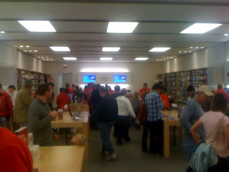 The Apple store cram packed with customers.