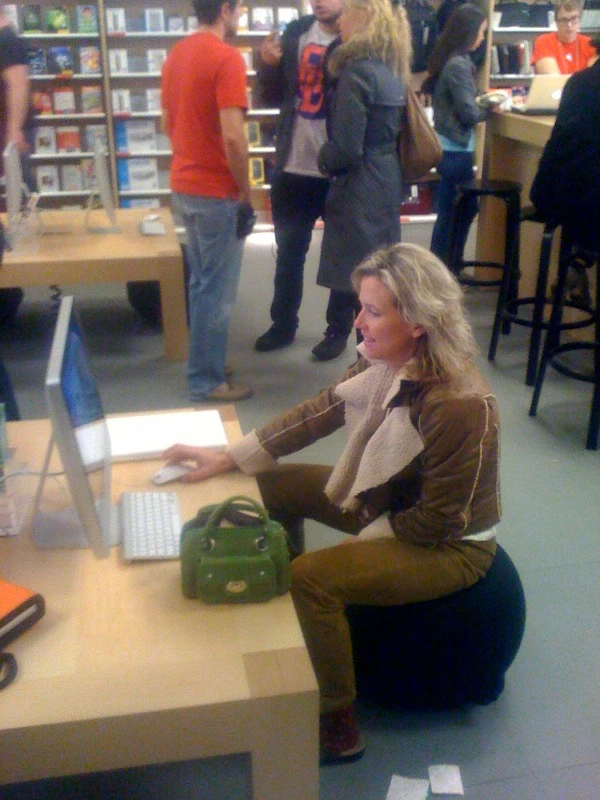 I found Catherine sitting on this ball waiting for her appointment with the genius guy.